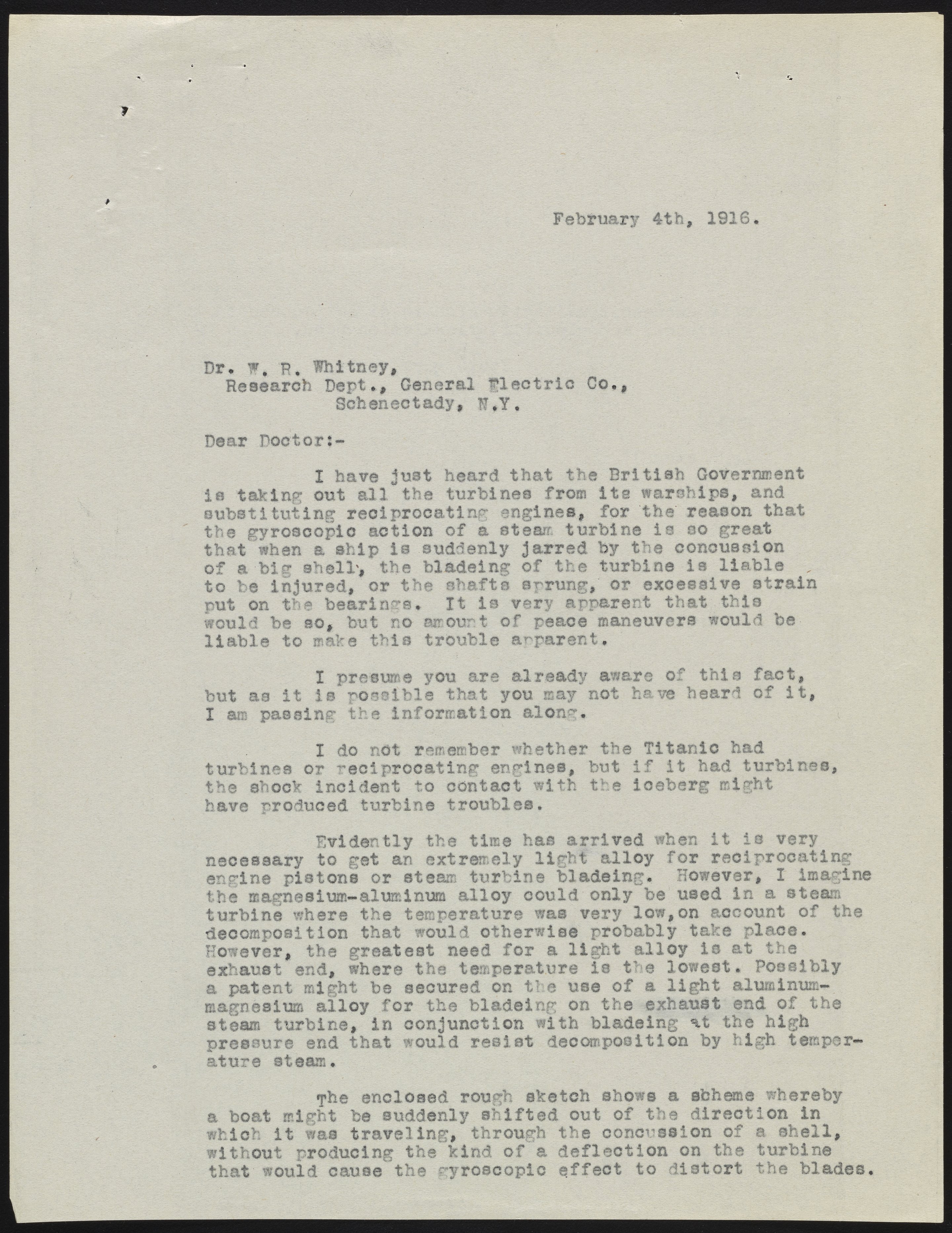 Dow, Herbert Henry. “Letter from Herbert H. Dow to Dr. Willis R. Whitney, February 4, 1916,” February 4, 1916. Papers of Herbert H. Dow, Box 54, Folder 160062. Science History Institute. Philadelphia. https://digital.sciencehistory.org/works/2b88qc96d.