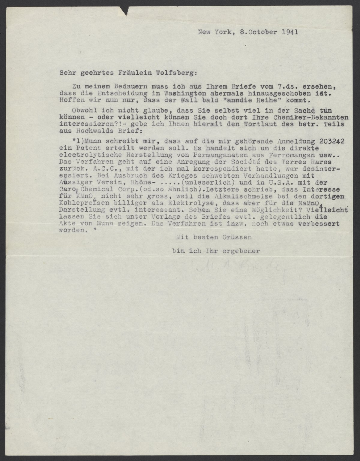 Letter from Max Bredig to Ilse Wolfsberg, October 8, 1941