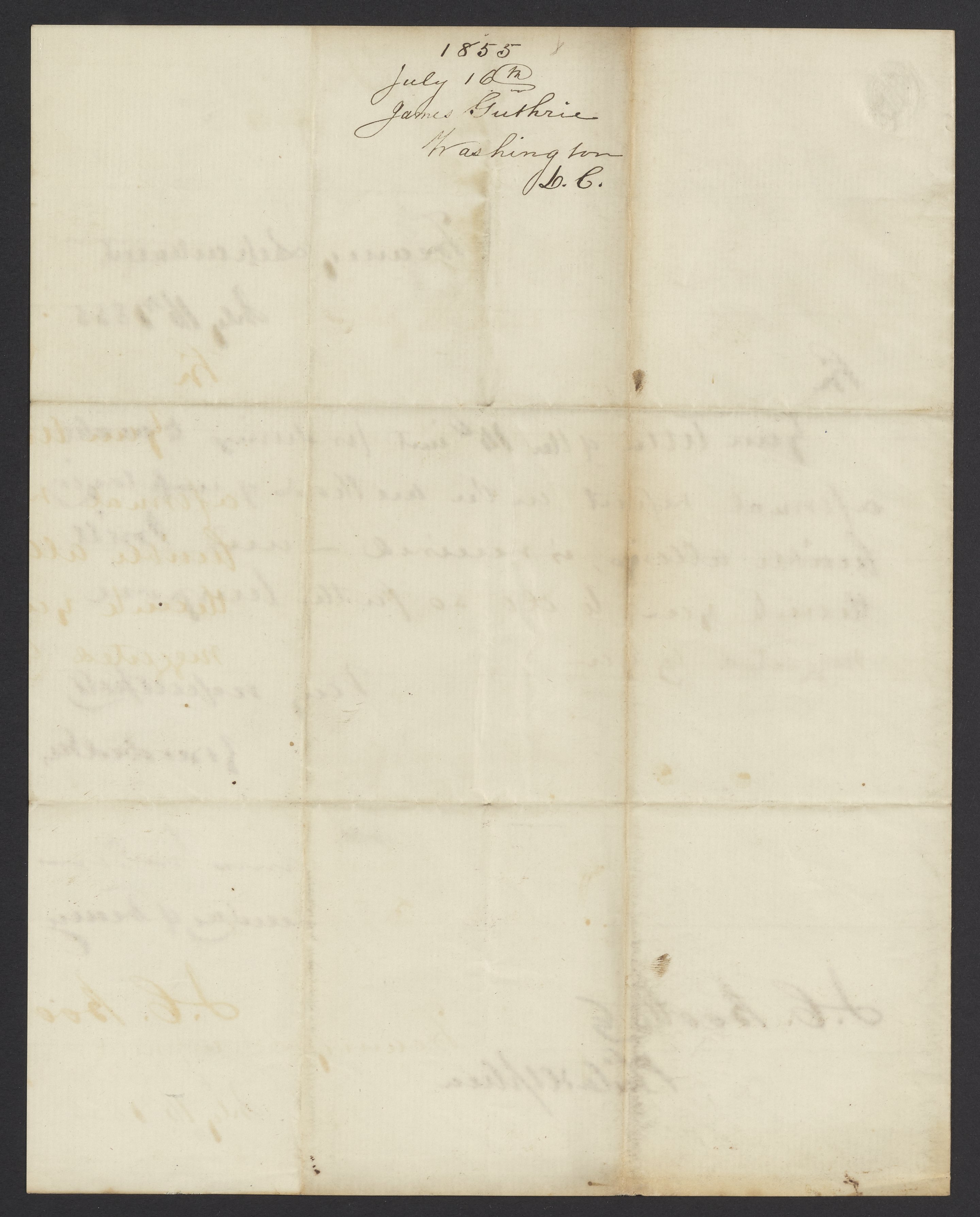 Letter from James B. Guthrie to James Curtis Booth, July 16, 1855