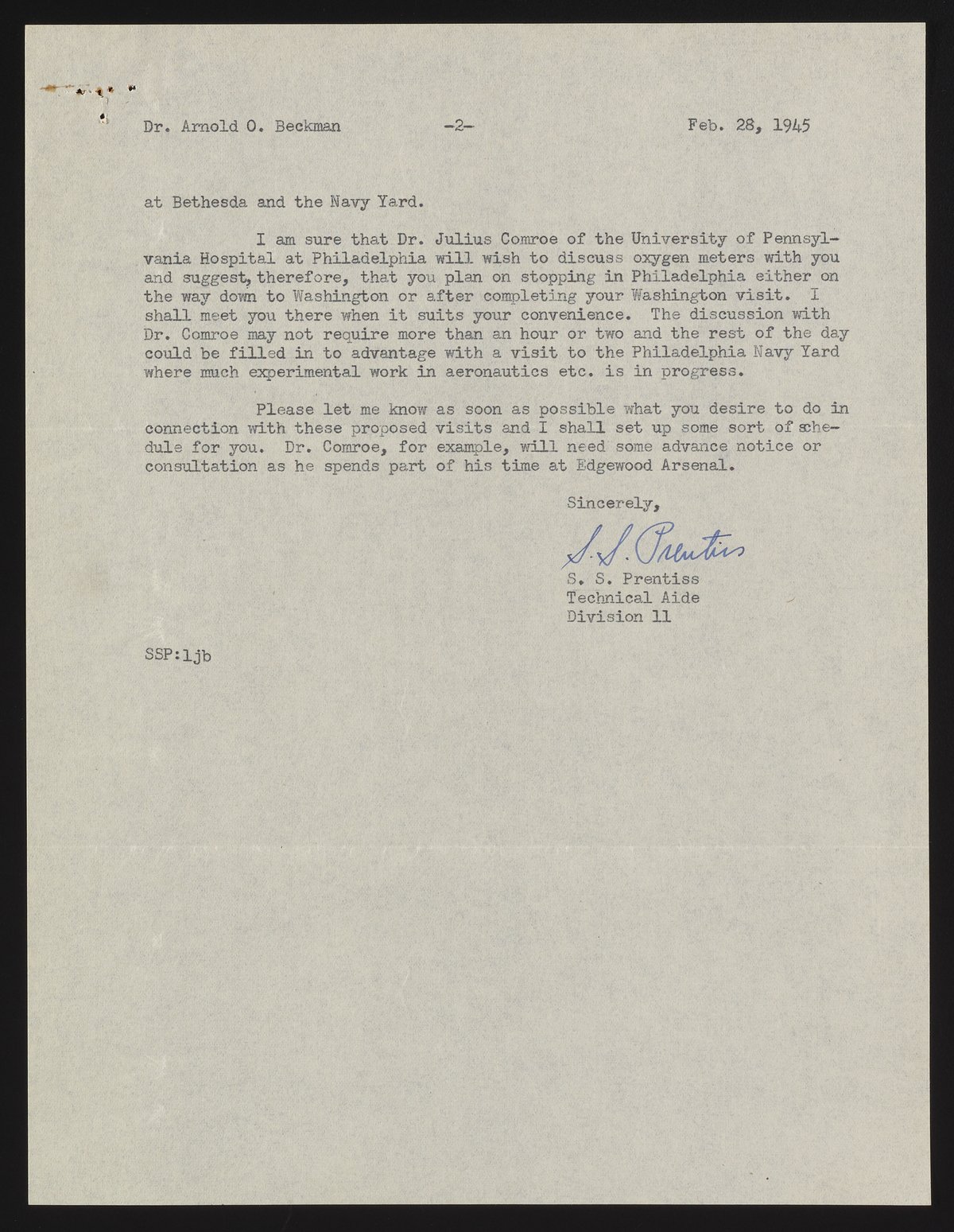 Letter from S. S. Prentiss to Arnold O. Beckman