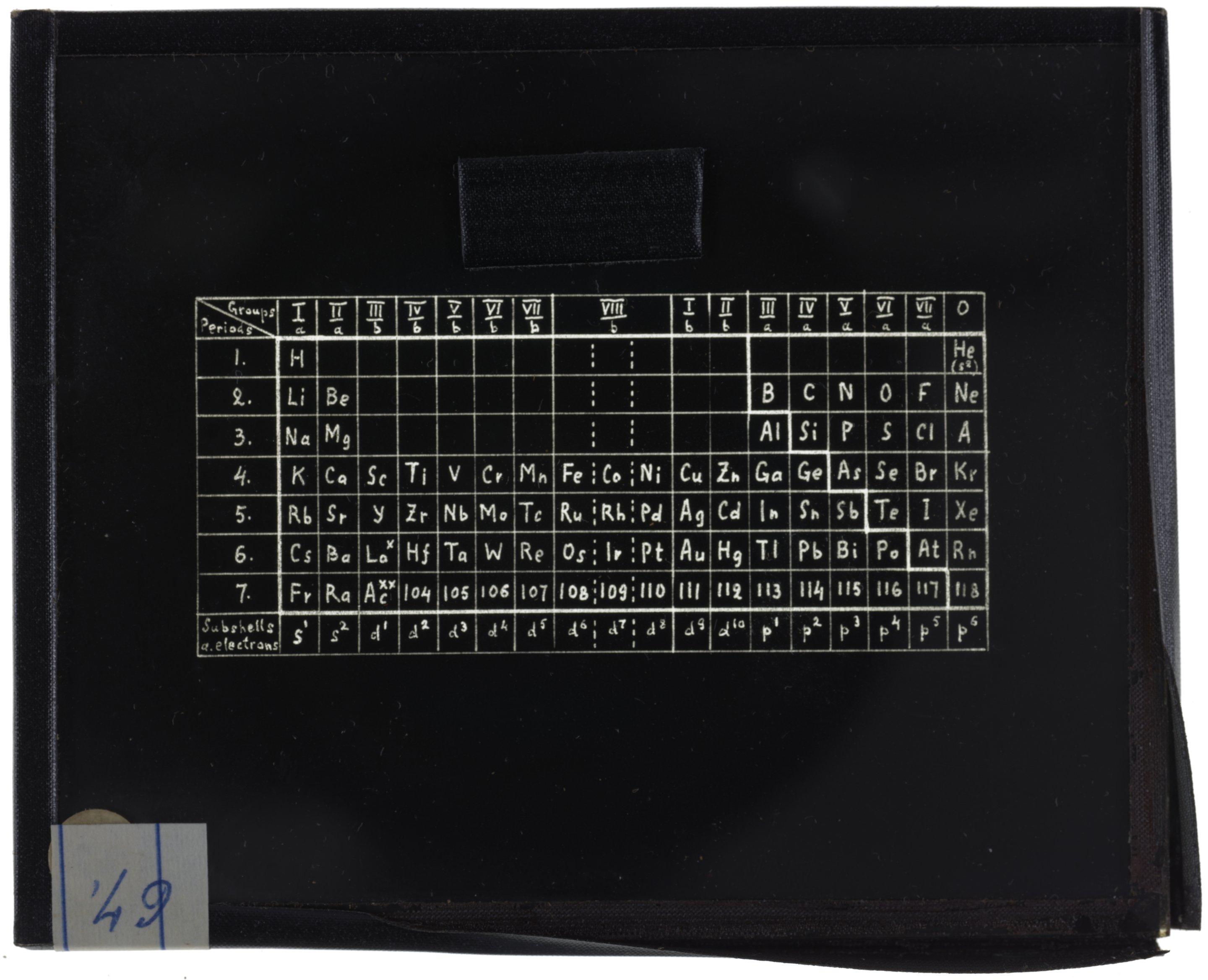 Series table designed by Dmitri Mendeleev (1869)1869 (Original design), Circa 1957 (Date attributed to slide)