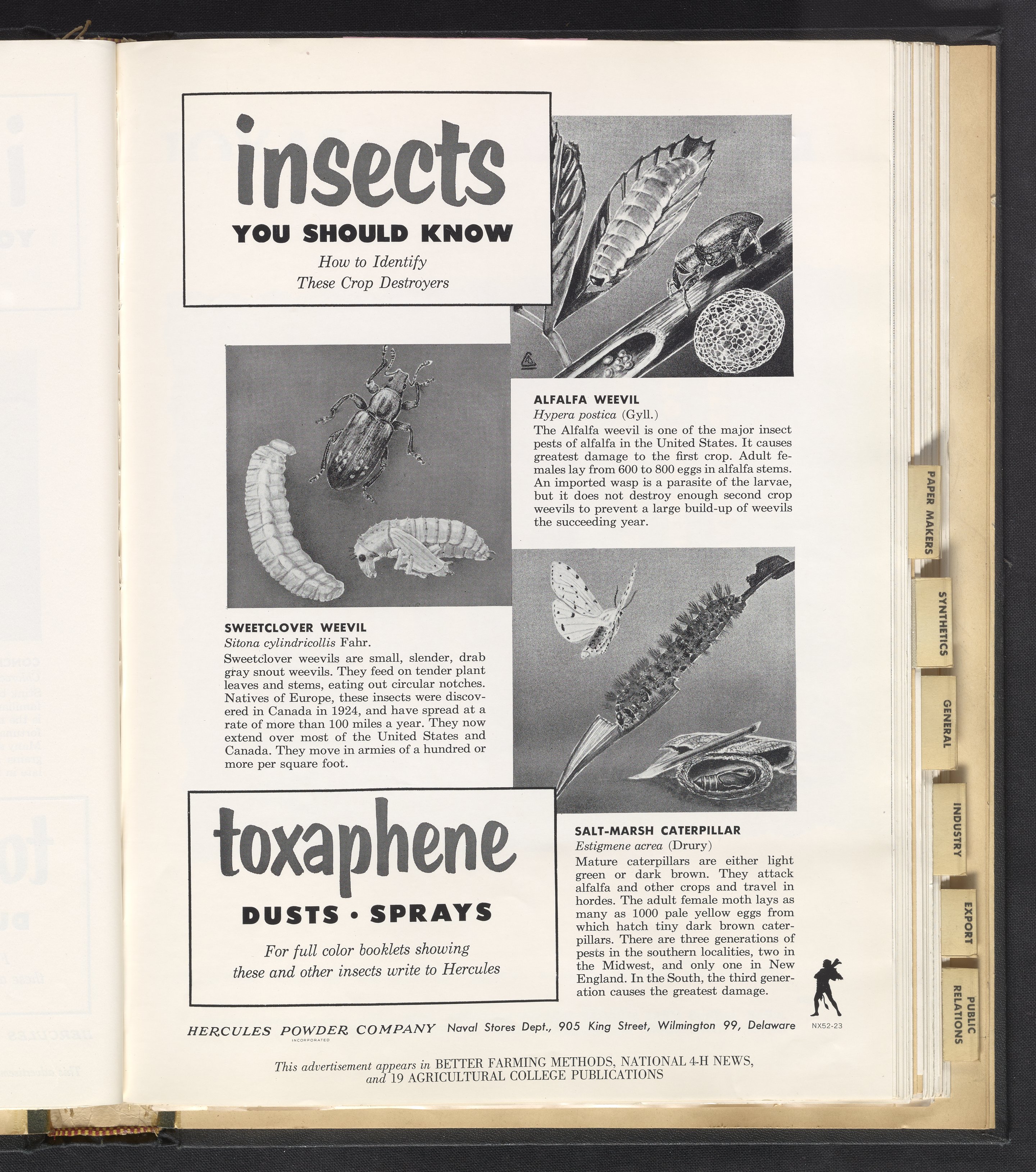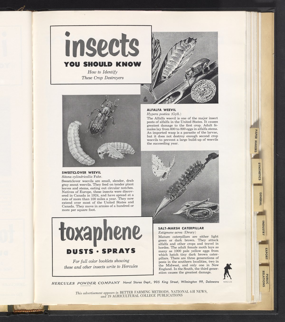 Hercules Incorporated. “Insects You Should Know.” 1952 Hercules Advertisements, 1952. Records of Hercules Incorporated, Volume 1952. Science History Institute. Philadelphia. https://digital.sciencehistory.org/works/2f75r884v.