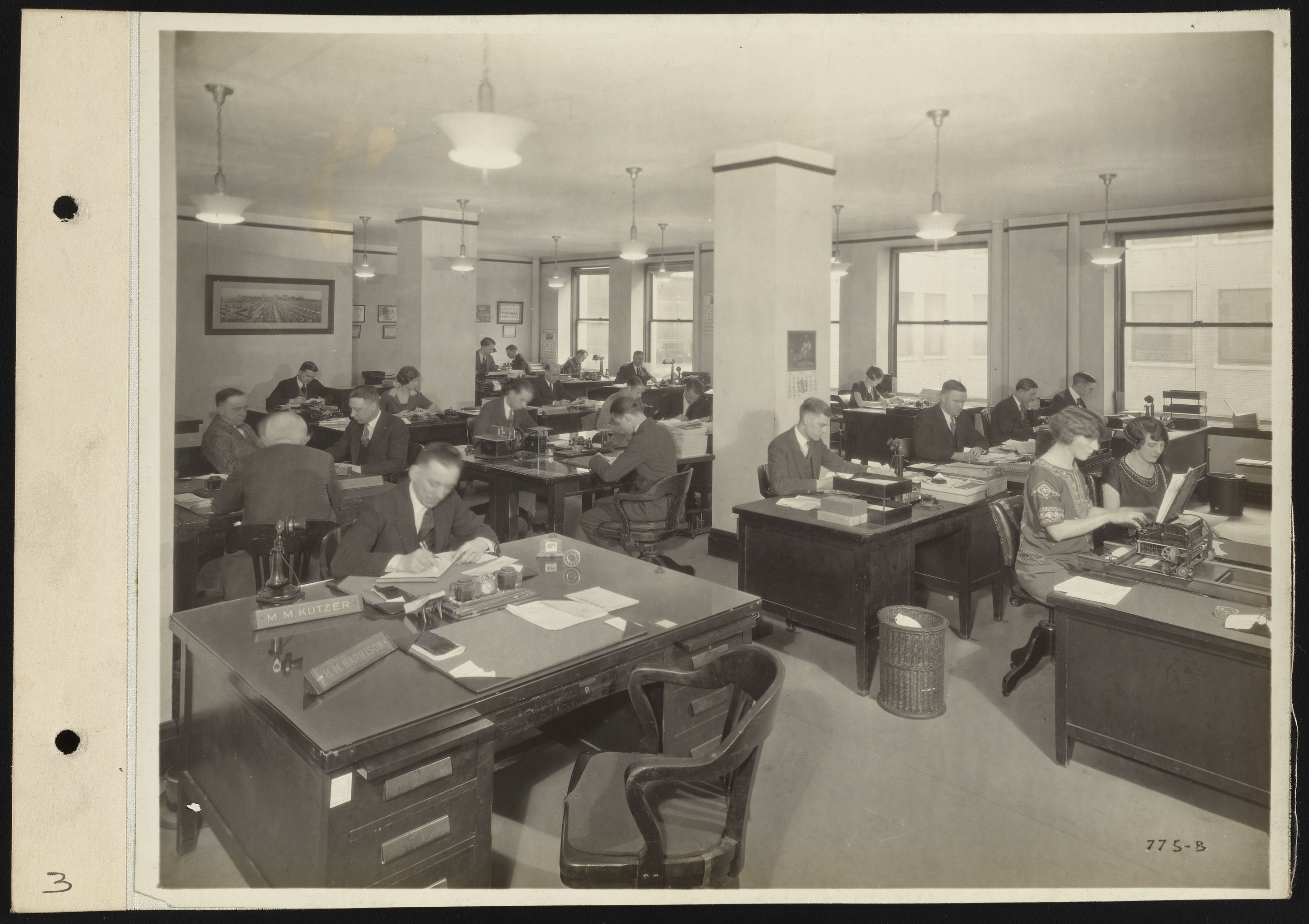 Dearborn Chemical Company. “Employees at Work in Dearborn Chemical Company Offices,” March 1925. BetzDearborn, Incorporated Records, Box 17, Folder 16. Science History Institute. Philadelphia. https://digital.sciencehistory.org/works/2f75r899g.