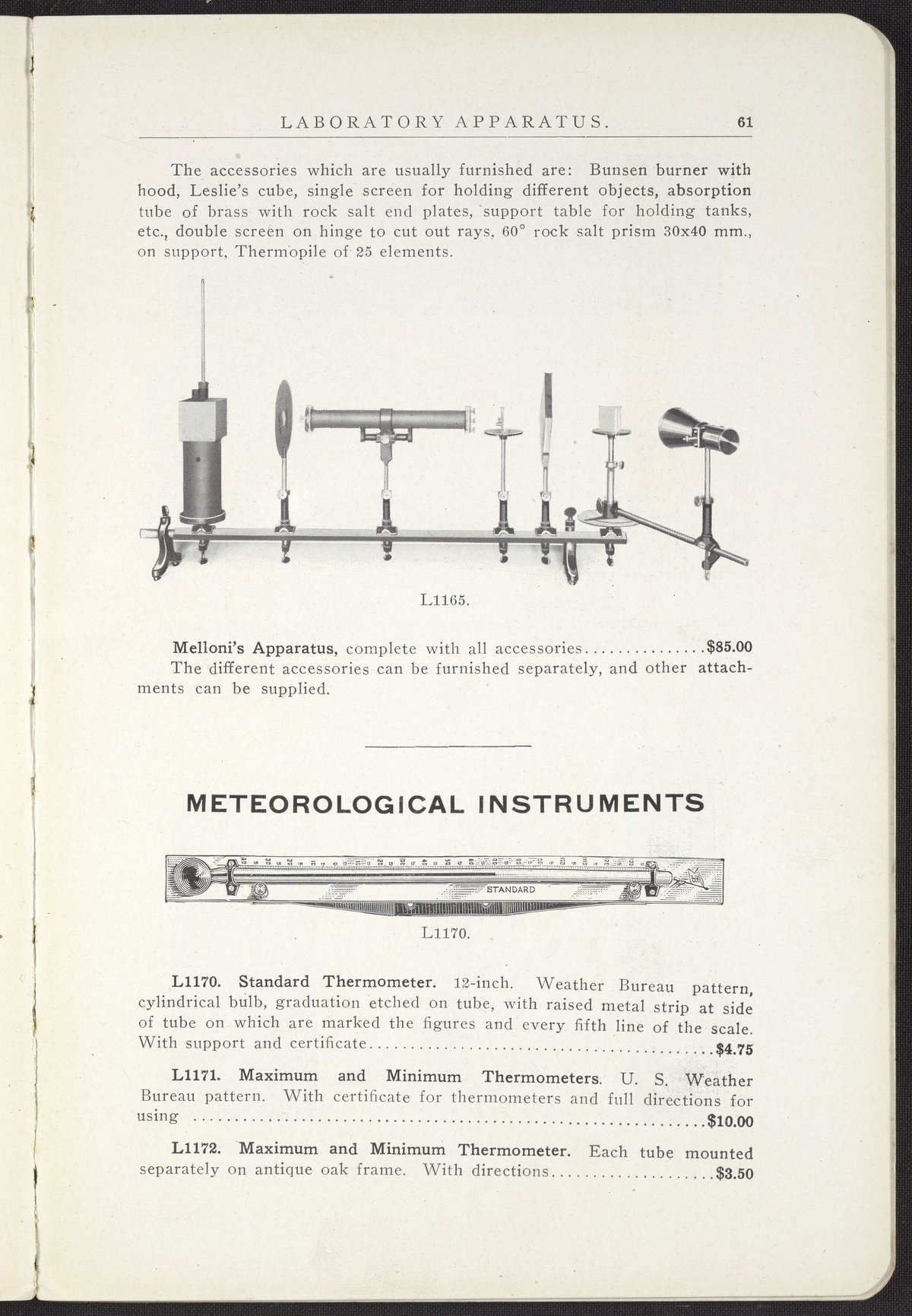 Wm. Gaertner & Company. “Melloni's Apparatus.” Instruments of Precision Laboratory Apparatus, M-L Catalog. Chicago, Illinois, 1911. https://digital.sciencehistory.org/works/2j62s486f.