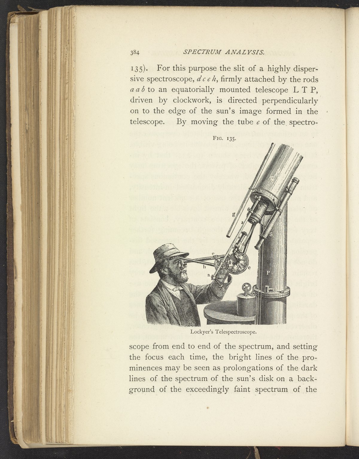 Schellen, Heinrich. “Lockyer's Telespectroscope.” Spectrum Analysis in Its Application to Terrestrial Substances, and the Physical Constitution of the Heavenly Bodies. London, England, 1872. Science History Institute. Philadelphia. https://digital.sciencehistory.org/works/2j62s602t.