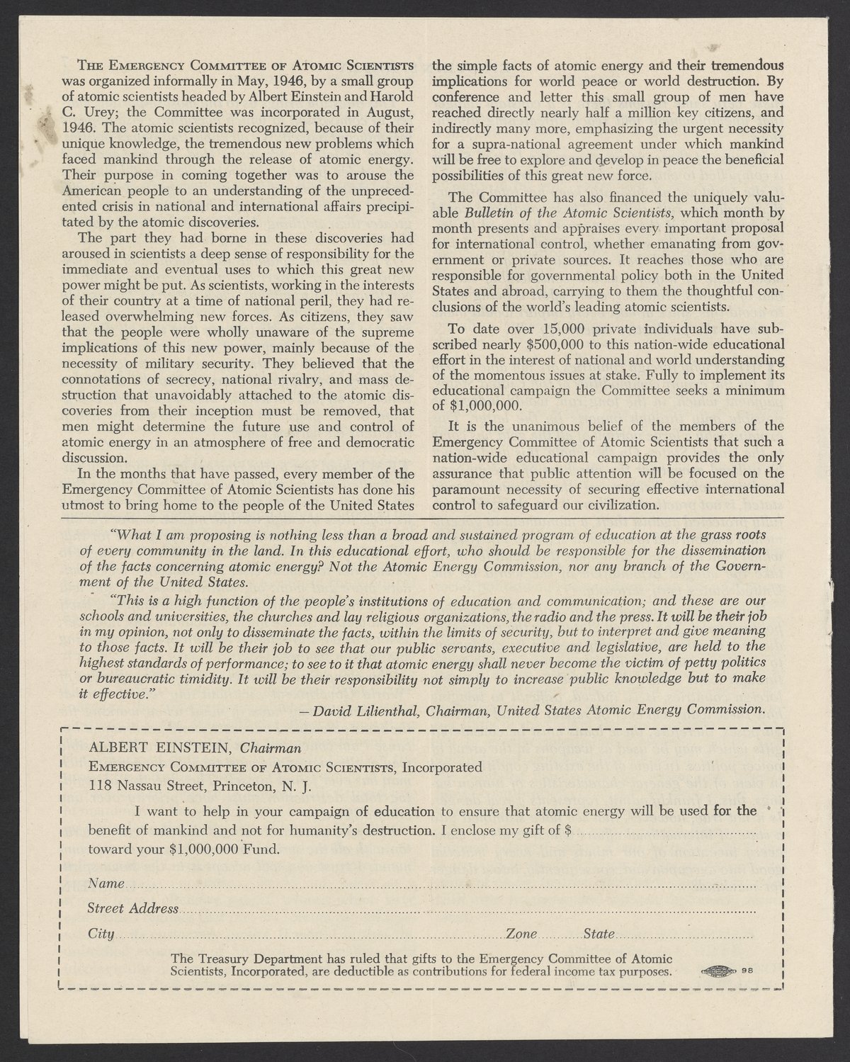 • Essays printed by the Emergency Committee of Atomic Scientists