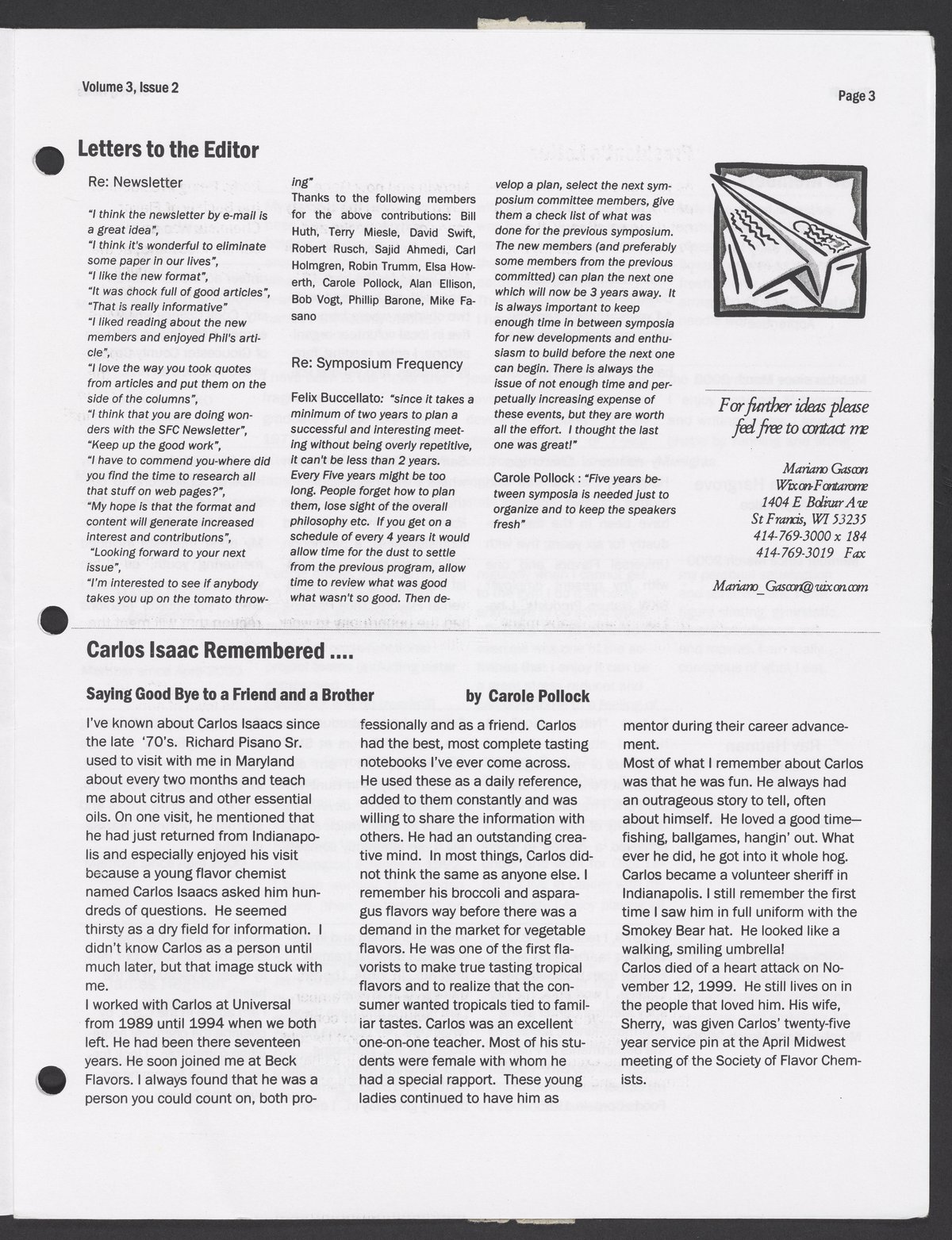 Small JPG1200 x 1554px — 366 KBLarge JPG2880 x 3730px — 1.7 MBFull-sized JPG5414 x 7012px — 5.4 MBOriginal fileTIFF — 5414 x 7012px — 109 MBSpring 2000 issue of the Society News, the Society of Flavor Chemists newsletter.