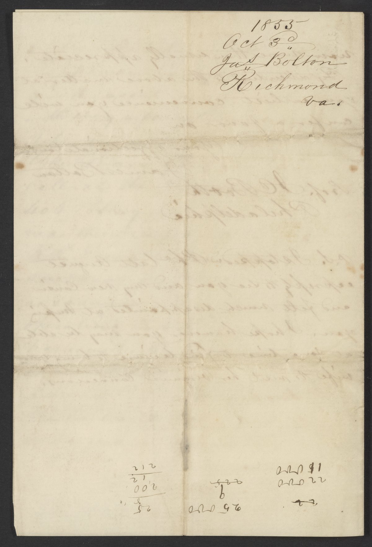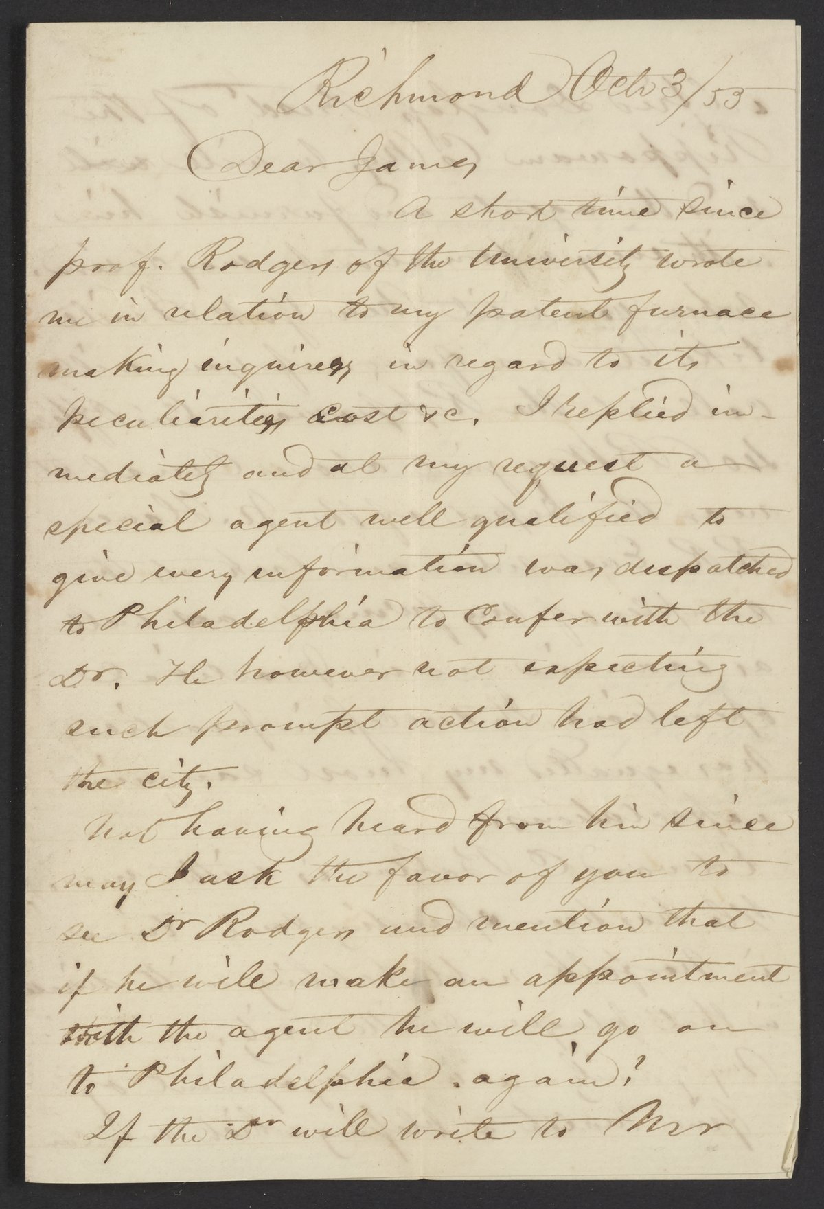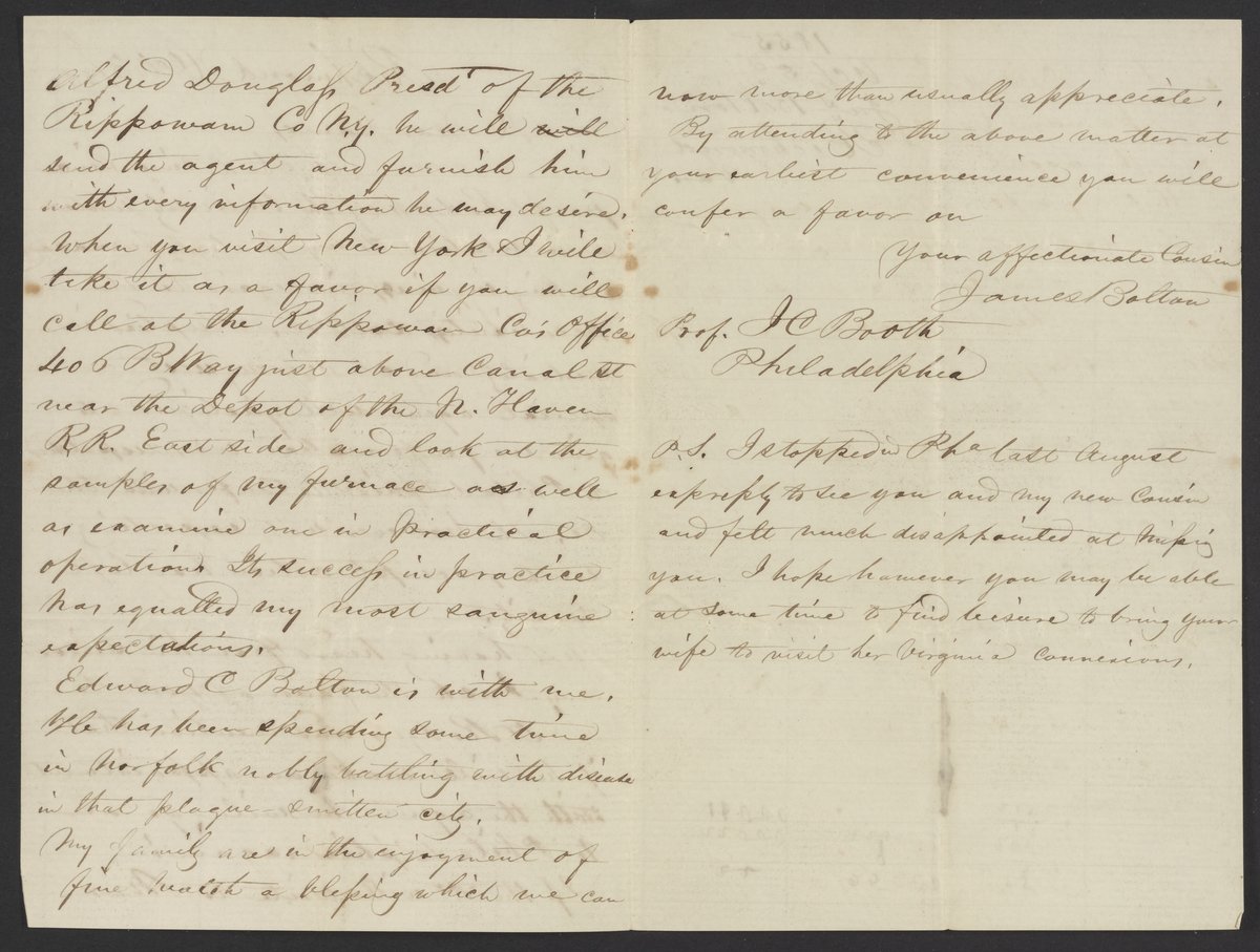 Letter from James Bolton to James Curtis Booth, October 30, 1855