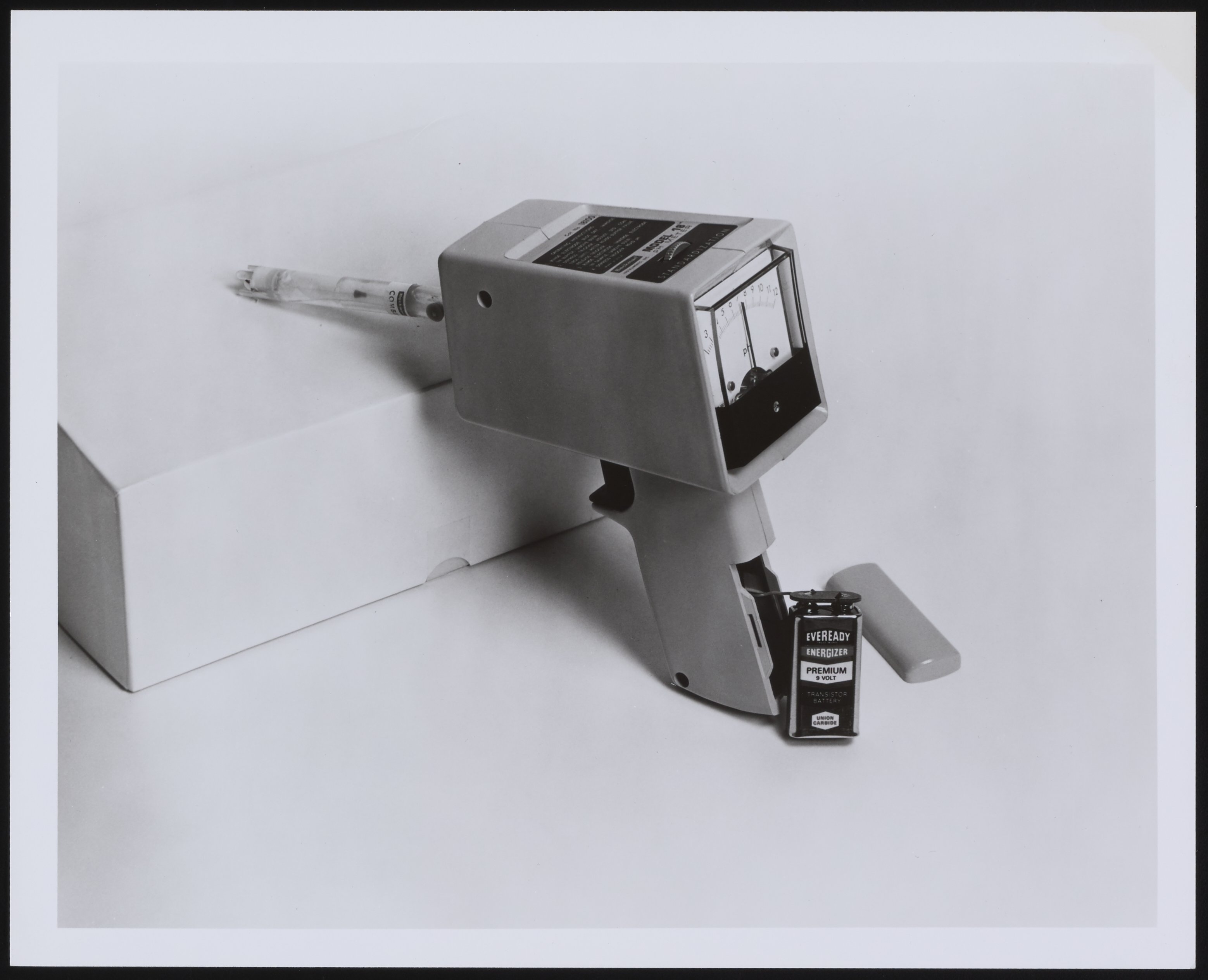 “Beckman Model 18 Phistol PH Meter,” circa 1975. Beckman Historical Collection, Box 83. Science History Institute. Philadelphia. https://digital.sciencehistory.org/works/2n49t195x.