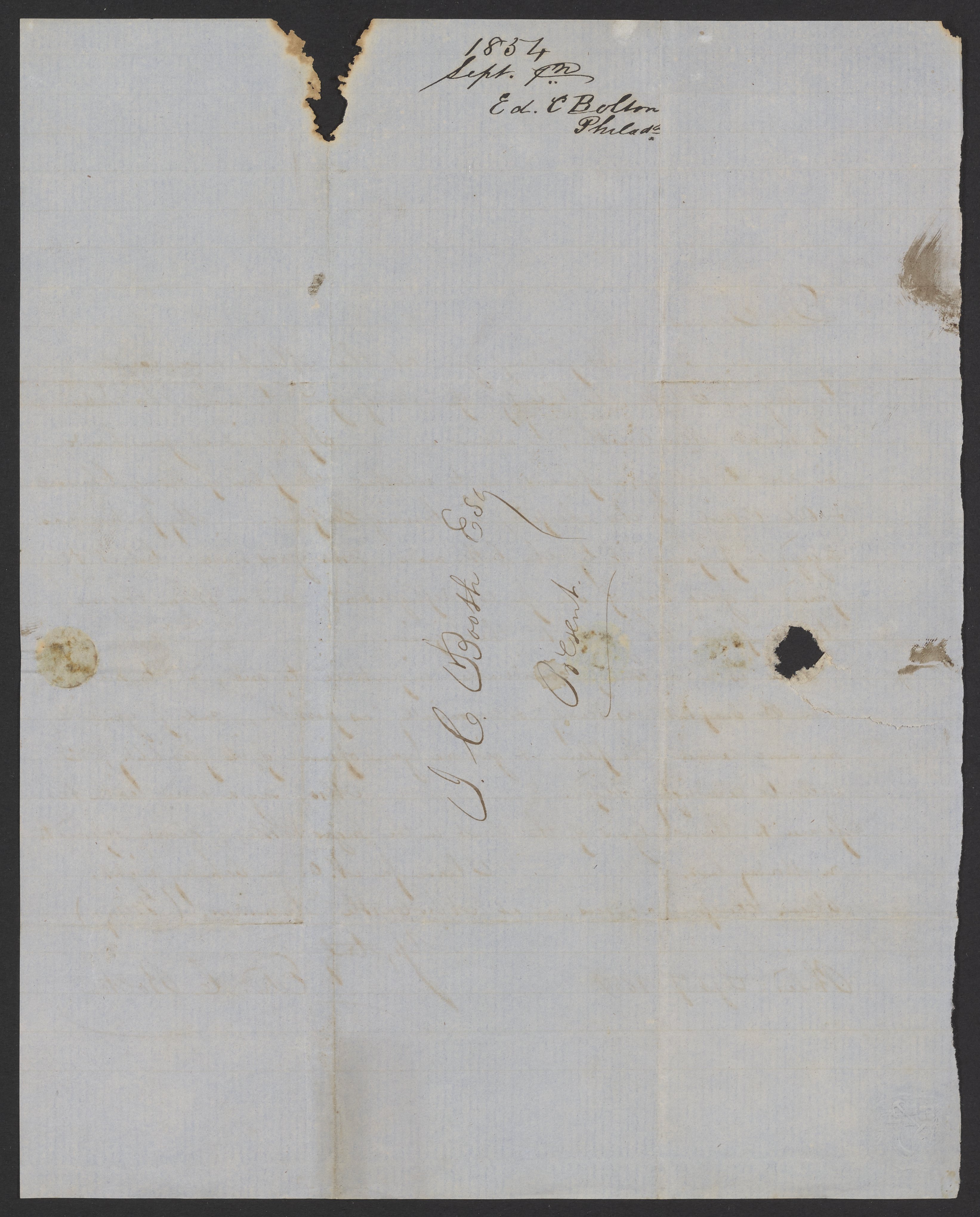 Letter from E.C. Bolton to James Curtis Booth, September 7, 1854