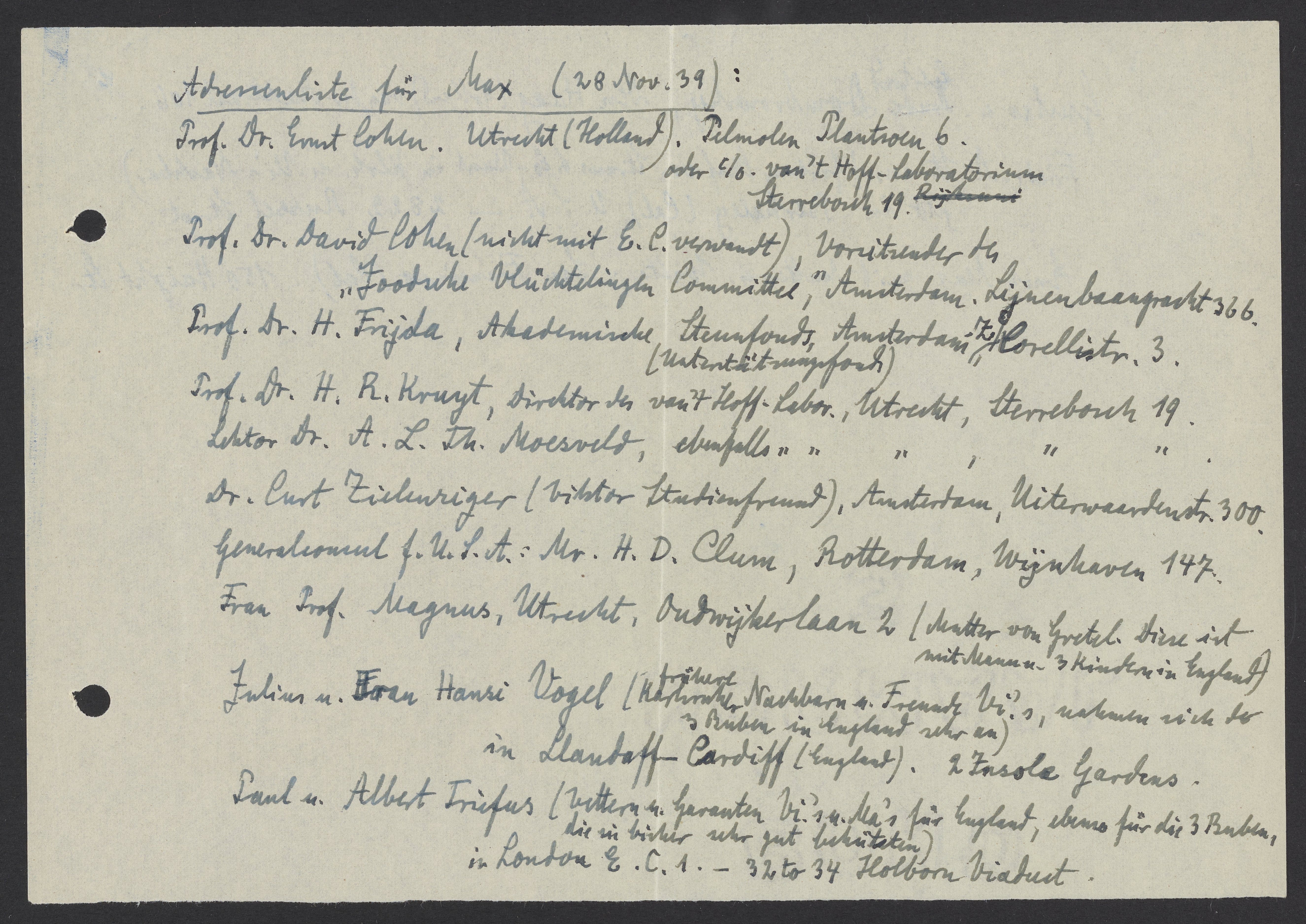 Bredig, Georg. “Contact List Written by Georg Bredig, November 28, 1939,” November 28, 1939. Papers of Georg and Max Bredig, Box 7, Folder 15. Science History Institute. Philadelphia. https://digital.sciencehistory.org/works/2pm8rjf.