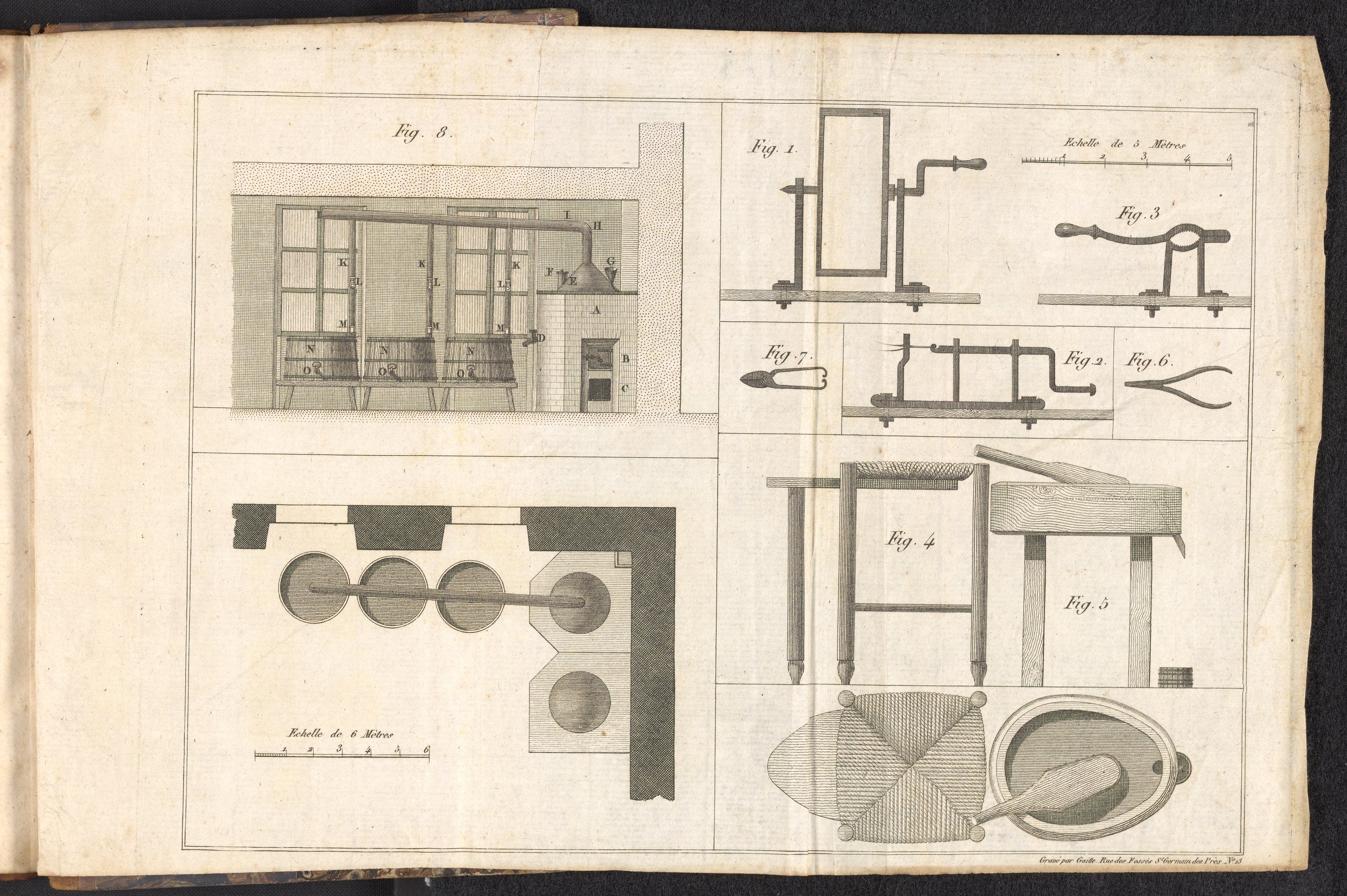 Foldout engraving from Le livre de tous les ménages, ou, L'art de conserver pendant plusieurs années, toutes les substances animales et végétales.