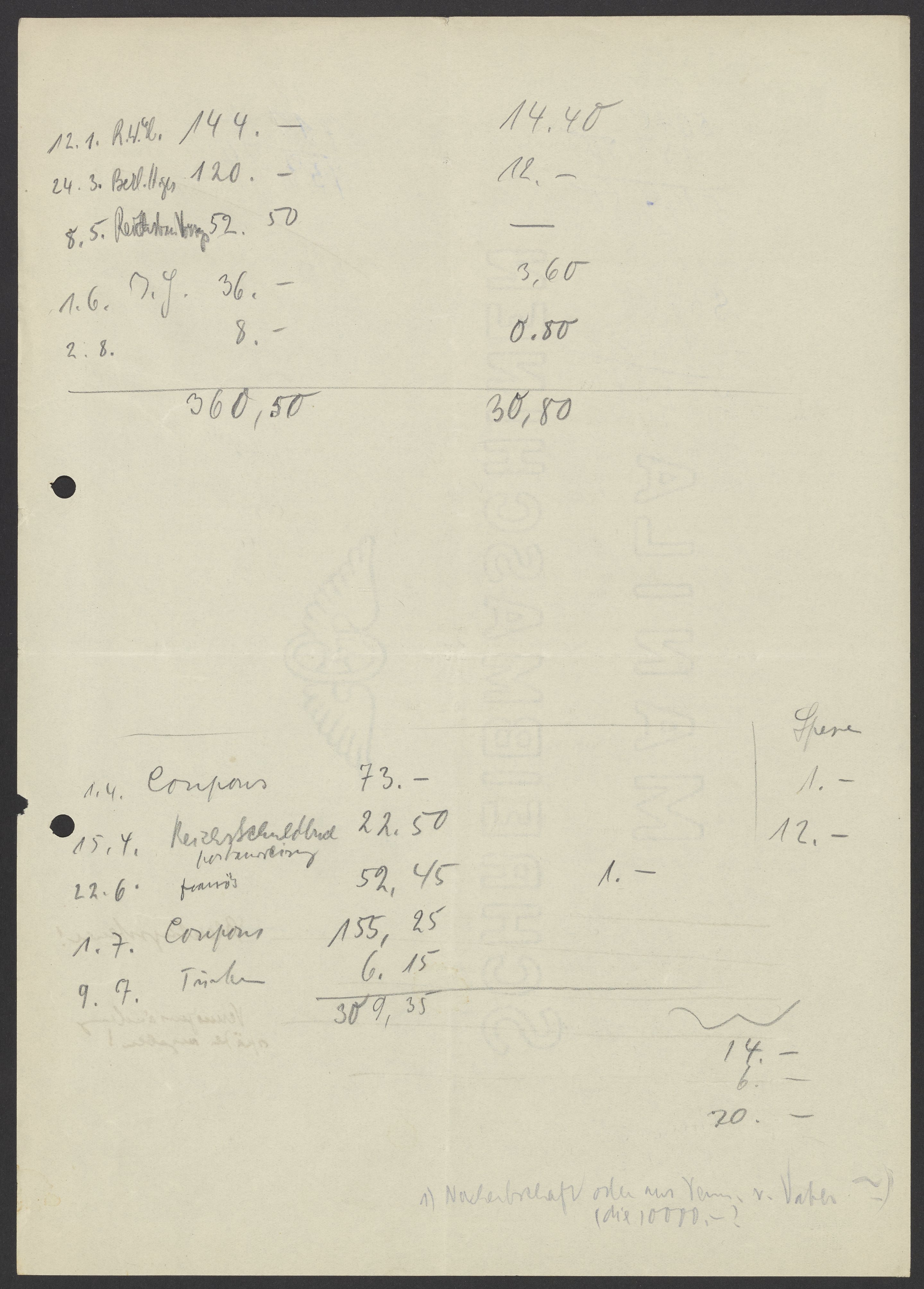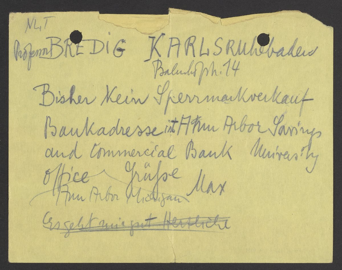 Financial documents of Max Bredig, undated