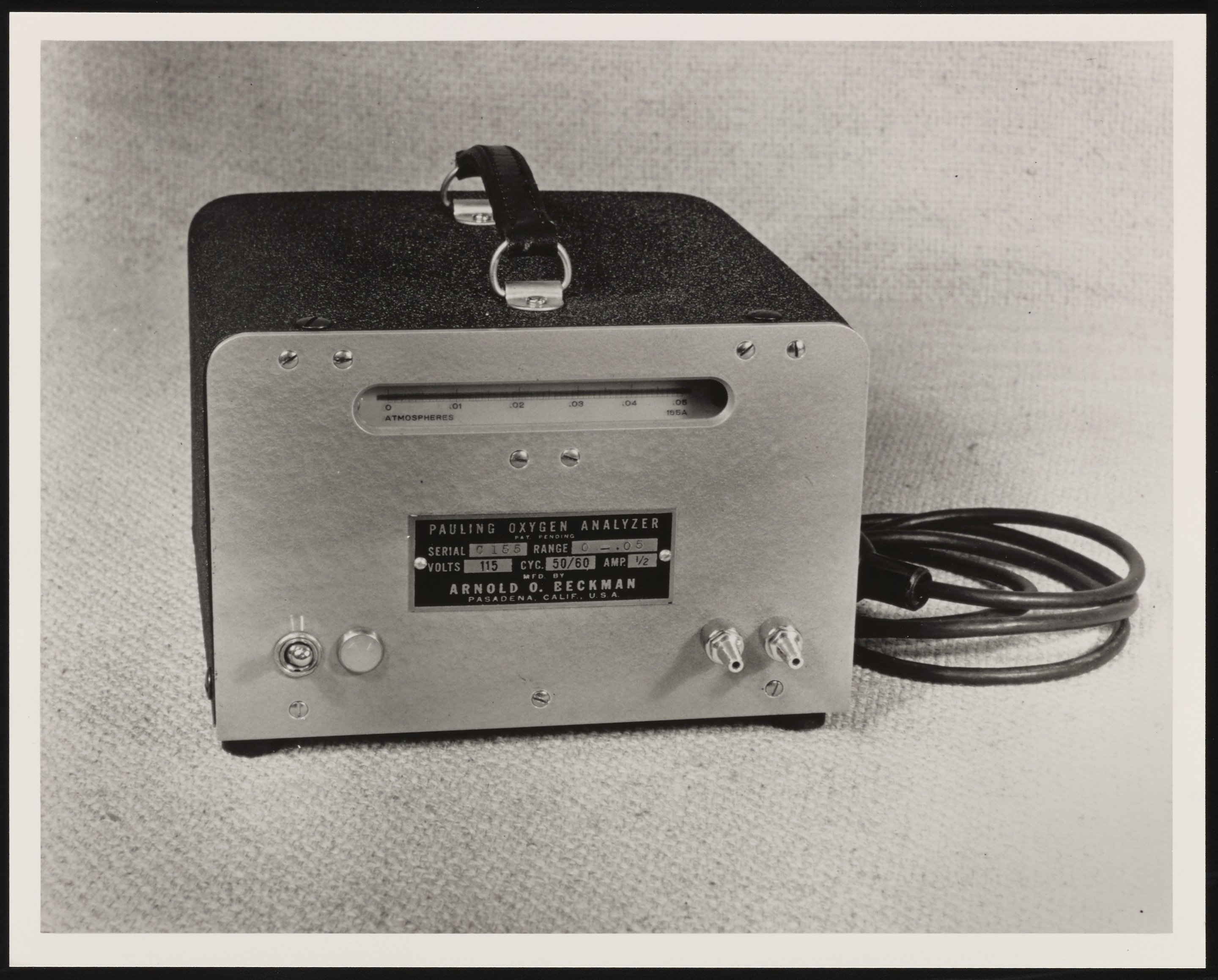 Small JPG1200 x 966px — 174 KBLarge JPG2880 x 2318px — 687 KBFull-sized JPG3158 x 2542px — 791 KBOriginal fileTIFF — 3158 x 2542px — 23.0 MBDeveloped from a Linus Pauling design during WWII, the technology behind Beckman Instruments’ oxygen analyzers ended up doing such diverse jobs as monitoring astronauts’ respiration, maintaining packaged food safety, and preventing blindness in newborn babies.