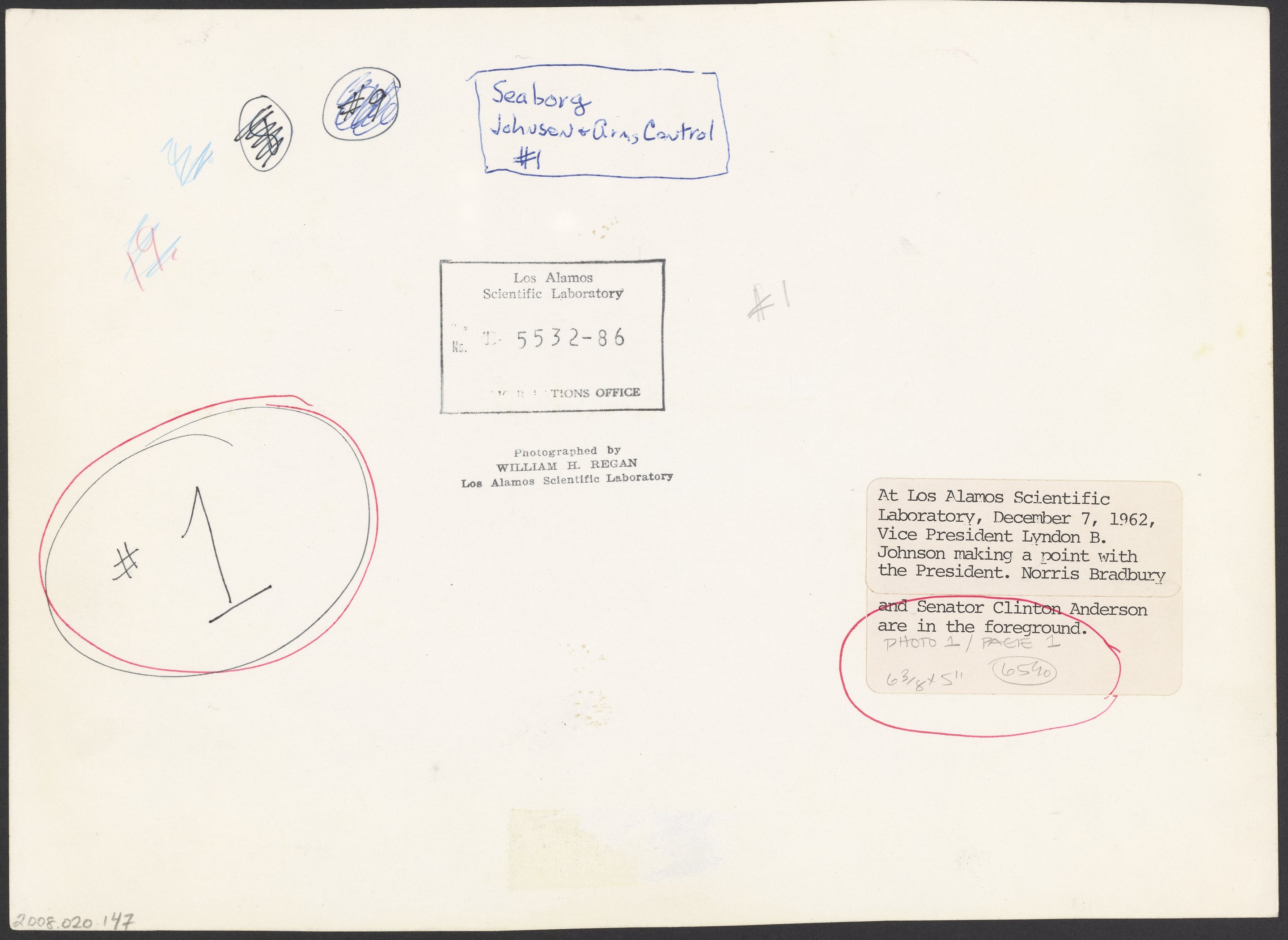Regan, William B. “President John F. Kennedy and Lyndon B. Johnson Visit Los Alamos Scientific Laboratory,” December 7, 1962. Records of the Lawrence Berkeley National Laboratory - Nuclear Division, Box 6. Science History Institute. Philadelphia. https://digital.sciencehistory.org/works/2ve0bgo.