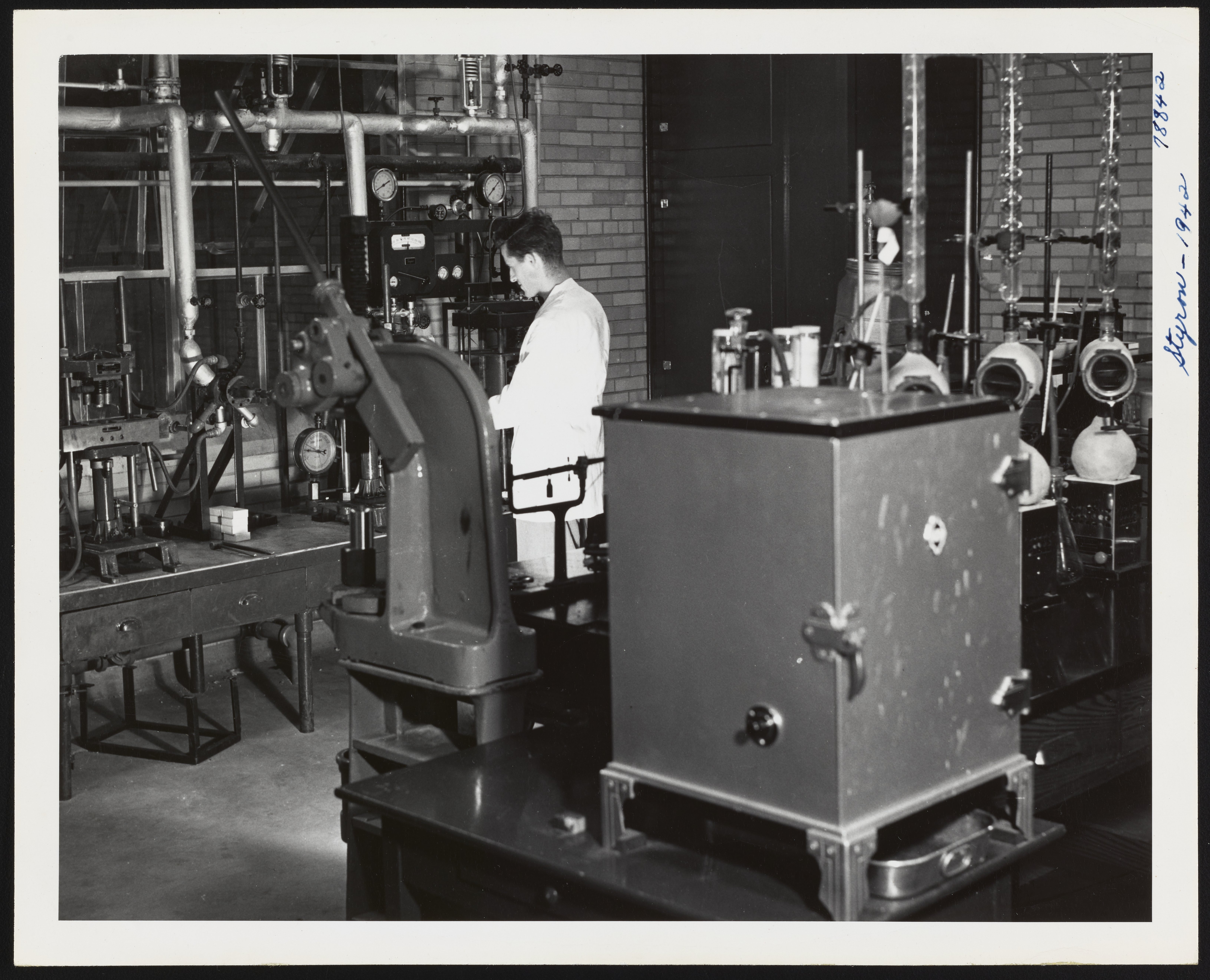 Dow Chemical Company. “Dow Chemical Company Styron Manufacturing Facilities,” 1942. Dow Chemical Company Historical Image Collection, Box 10, Folder Plants--Styron Laboratory. Science History Institute. Philadelphia. https://digital.sciencehistory.org/works/2z10wr39b.