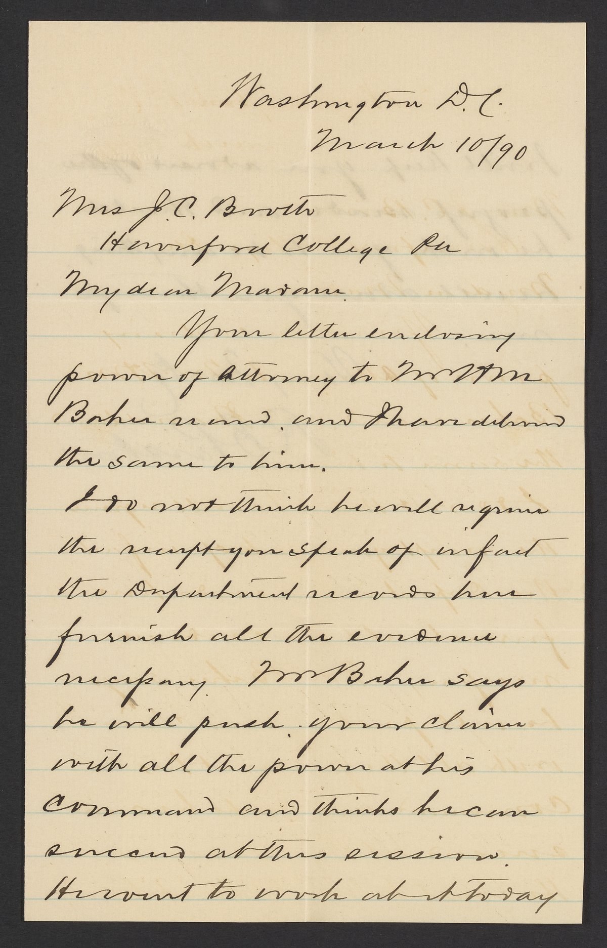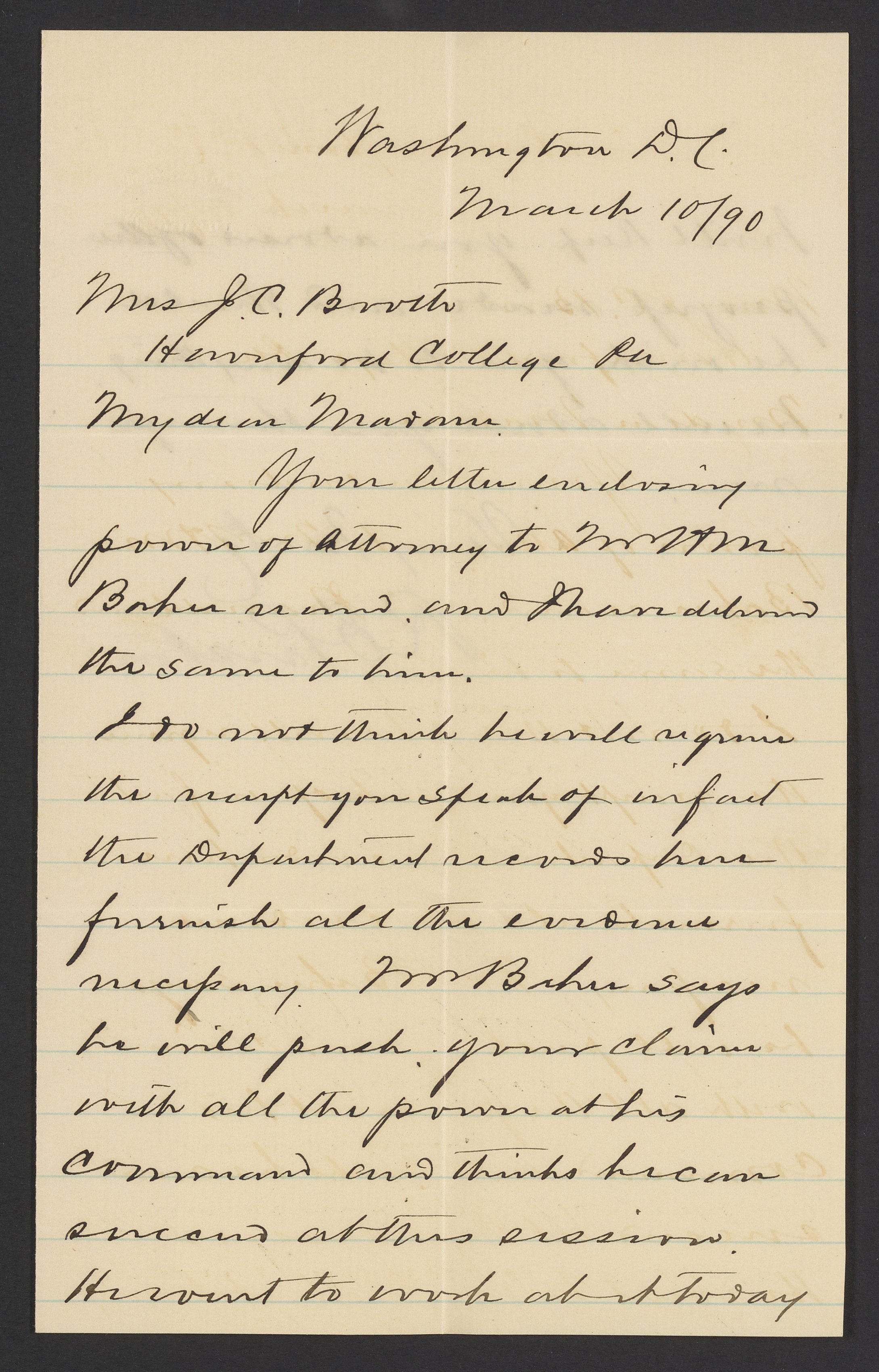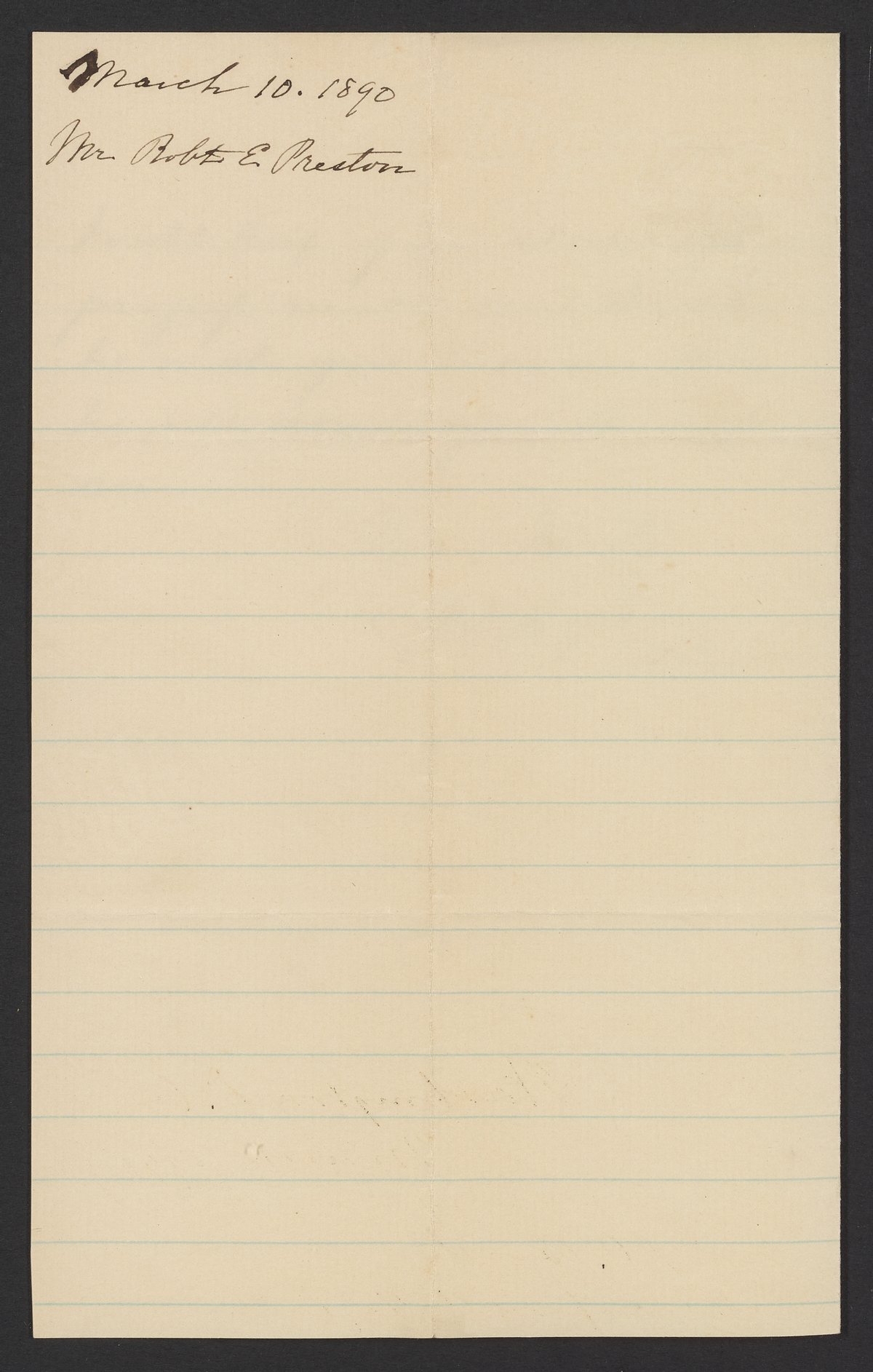 Letter from R.E. Preston to Margaret M. Booth, March 10, 1890