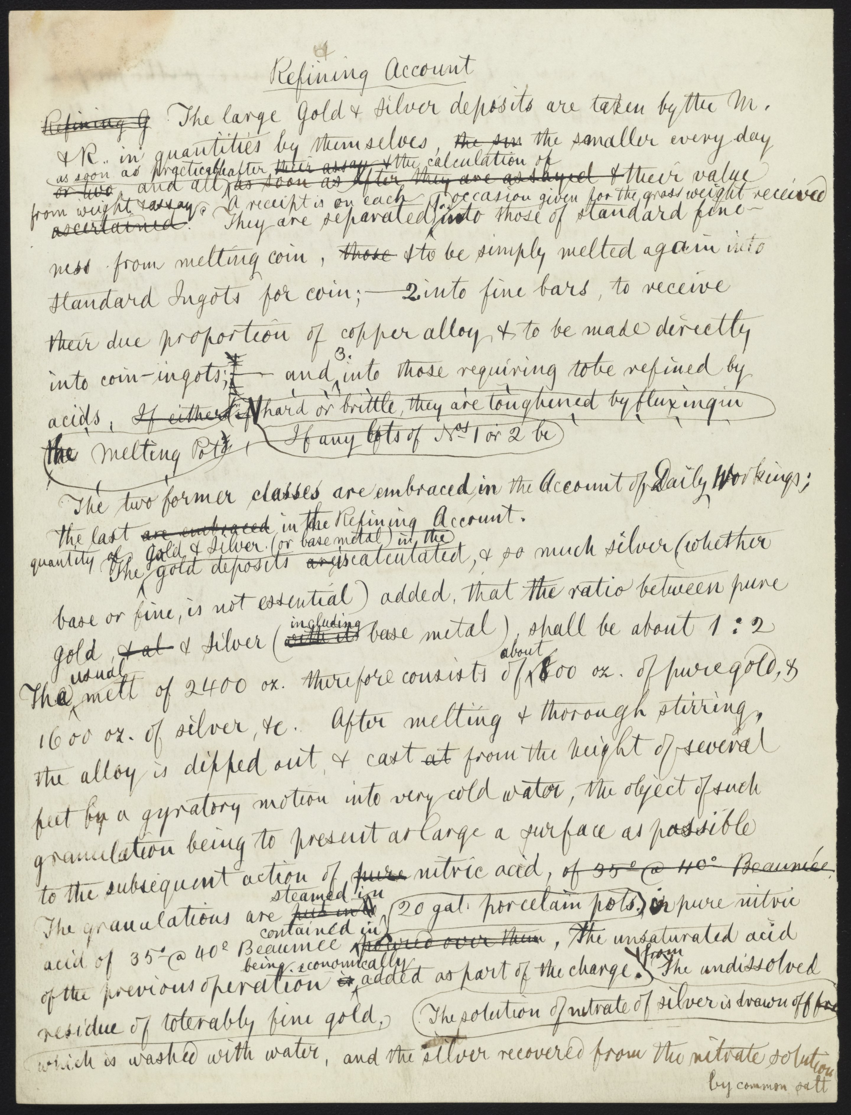 Notes on the modes of operating in the Melting and Refining Office of the United States Mint