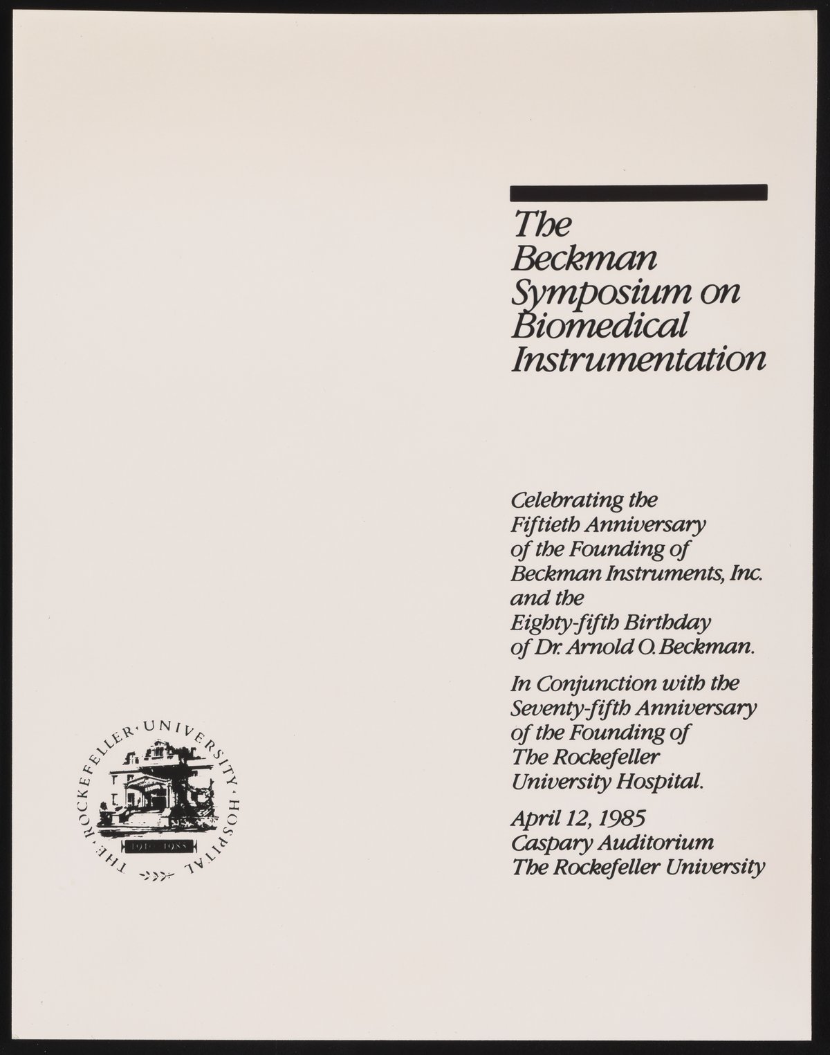 Reception and Dinner at Rockefeller University and Beckman Symposium on Biomedical Instrumentation