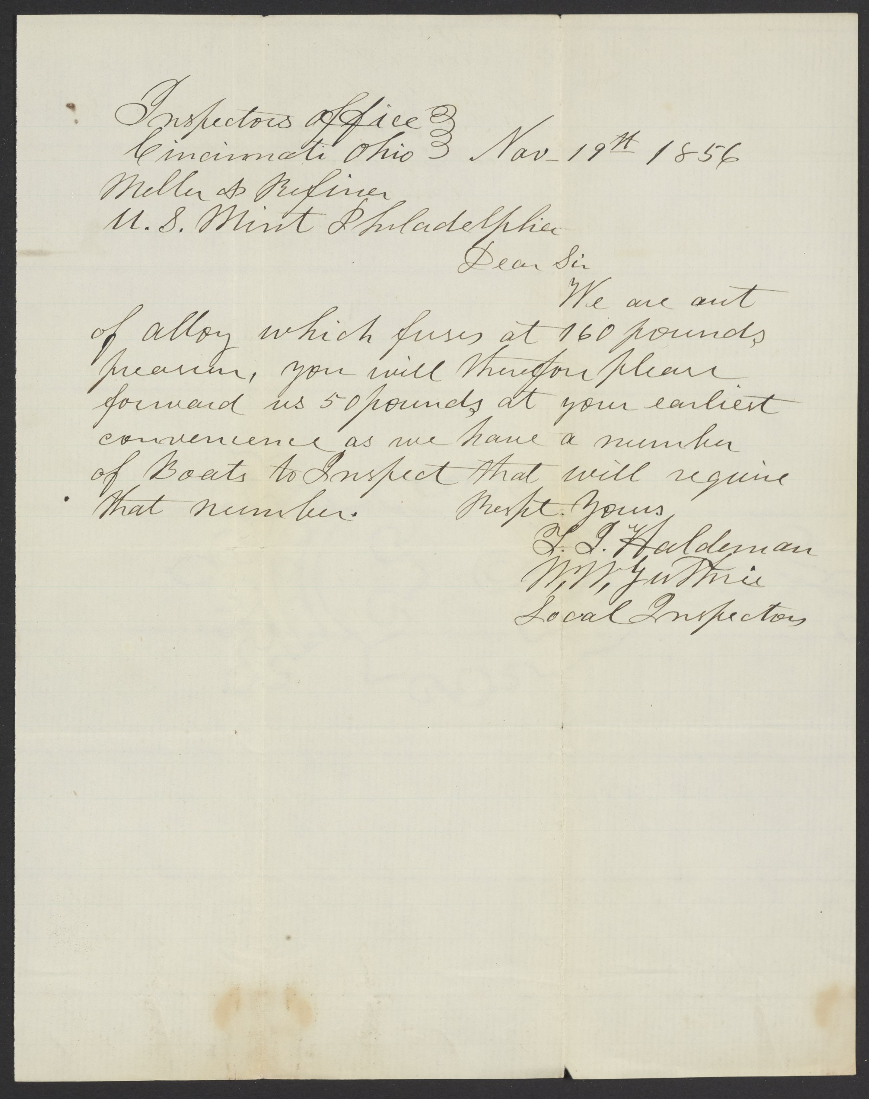 Letter from Guthrie and Haldeman to James Curtis Booth, November 19, 1856