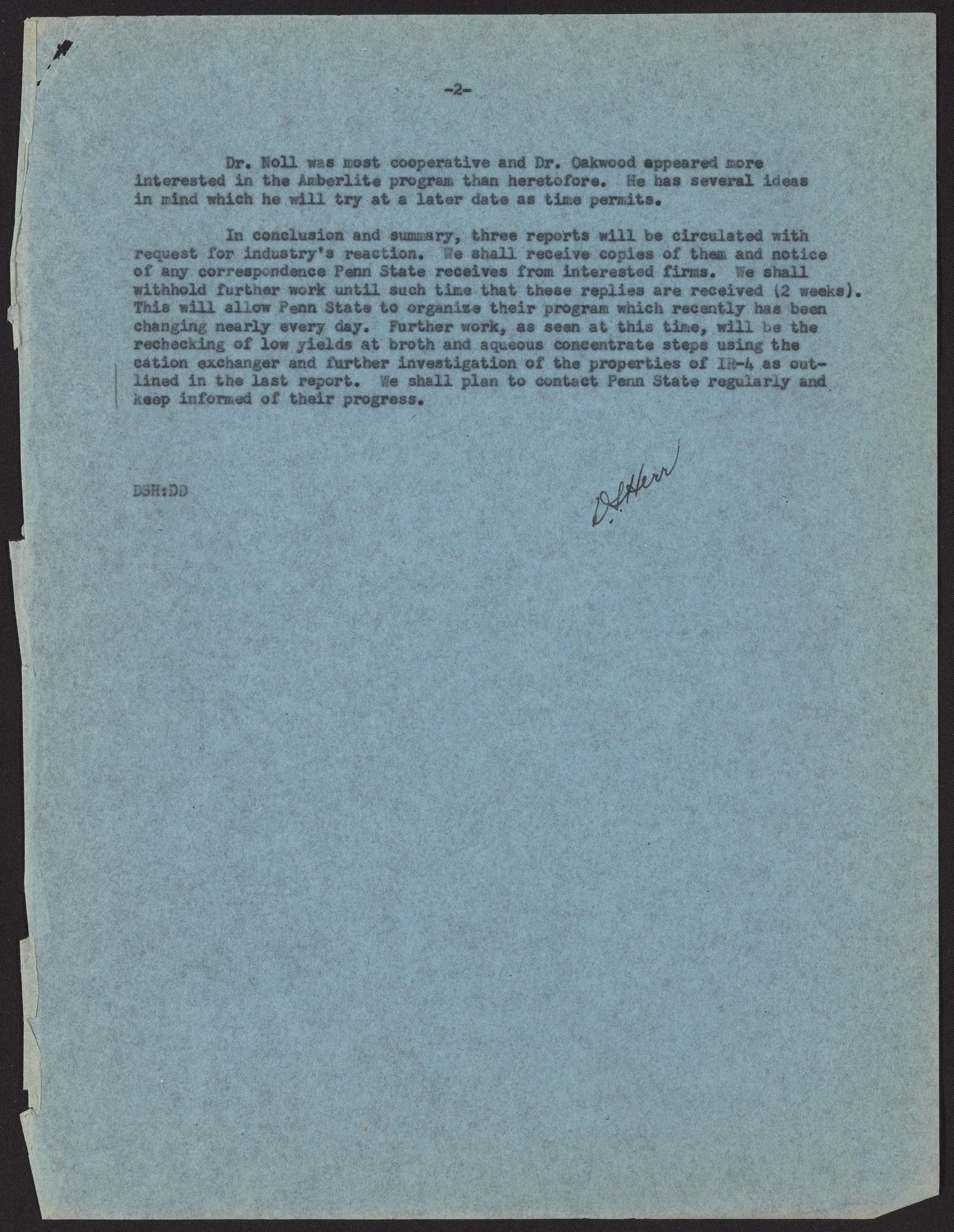 Report written by Donald S. Herr (1915-2003) on the future of the Amberlite I. E. R. penicillin program.