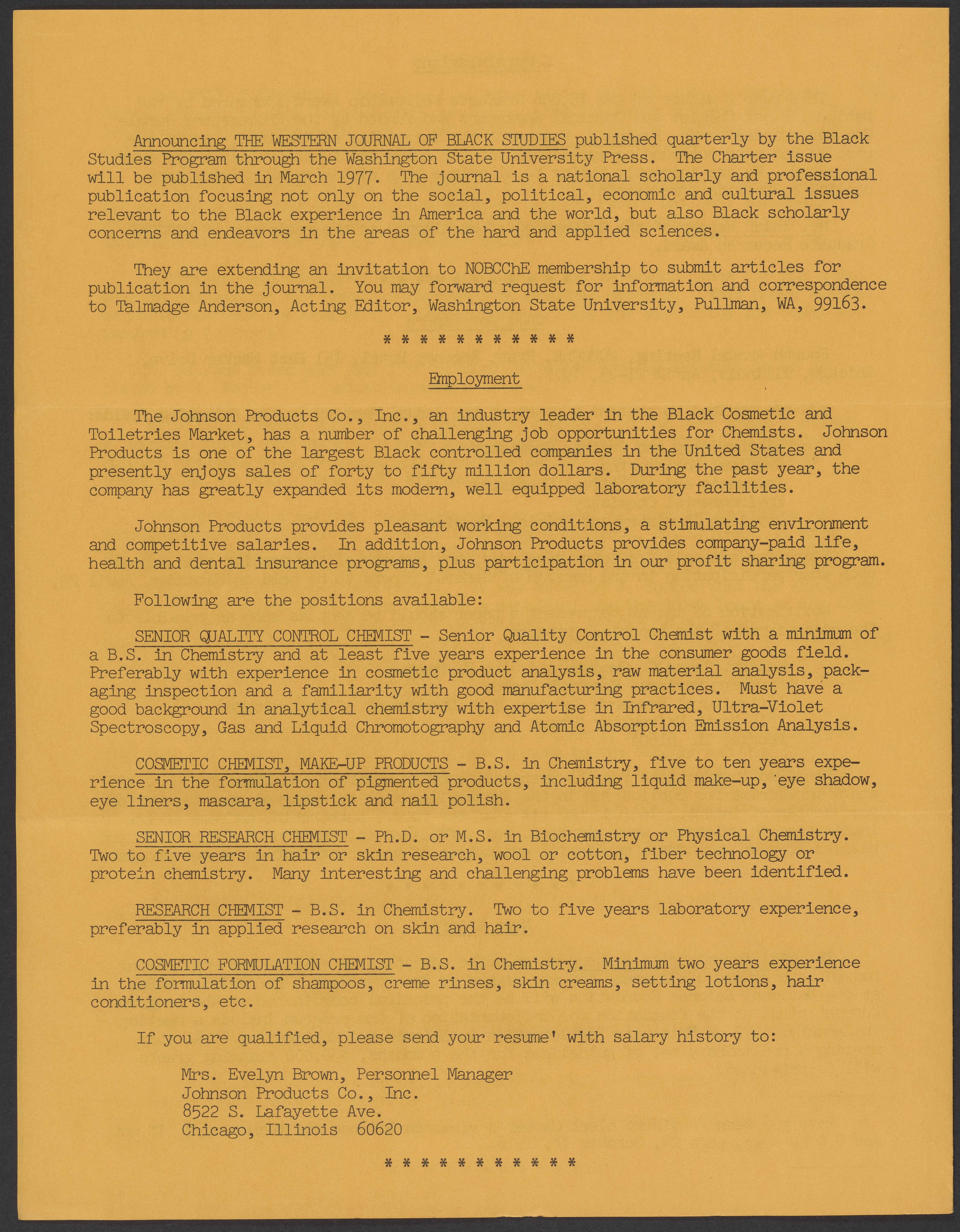 “National Organization for the Professional Advancement of Black Chemists and Chemical Engineers Newsletter, December 1976.” National Organization for Black Chemists and Chemical Engineers, December 1976. William A. Lester, Jr. Papers, Box 44, Folder 20. Science History Institute. Philadelphia. https://digital.sciencehistory.org/works/38otgkc.