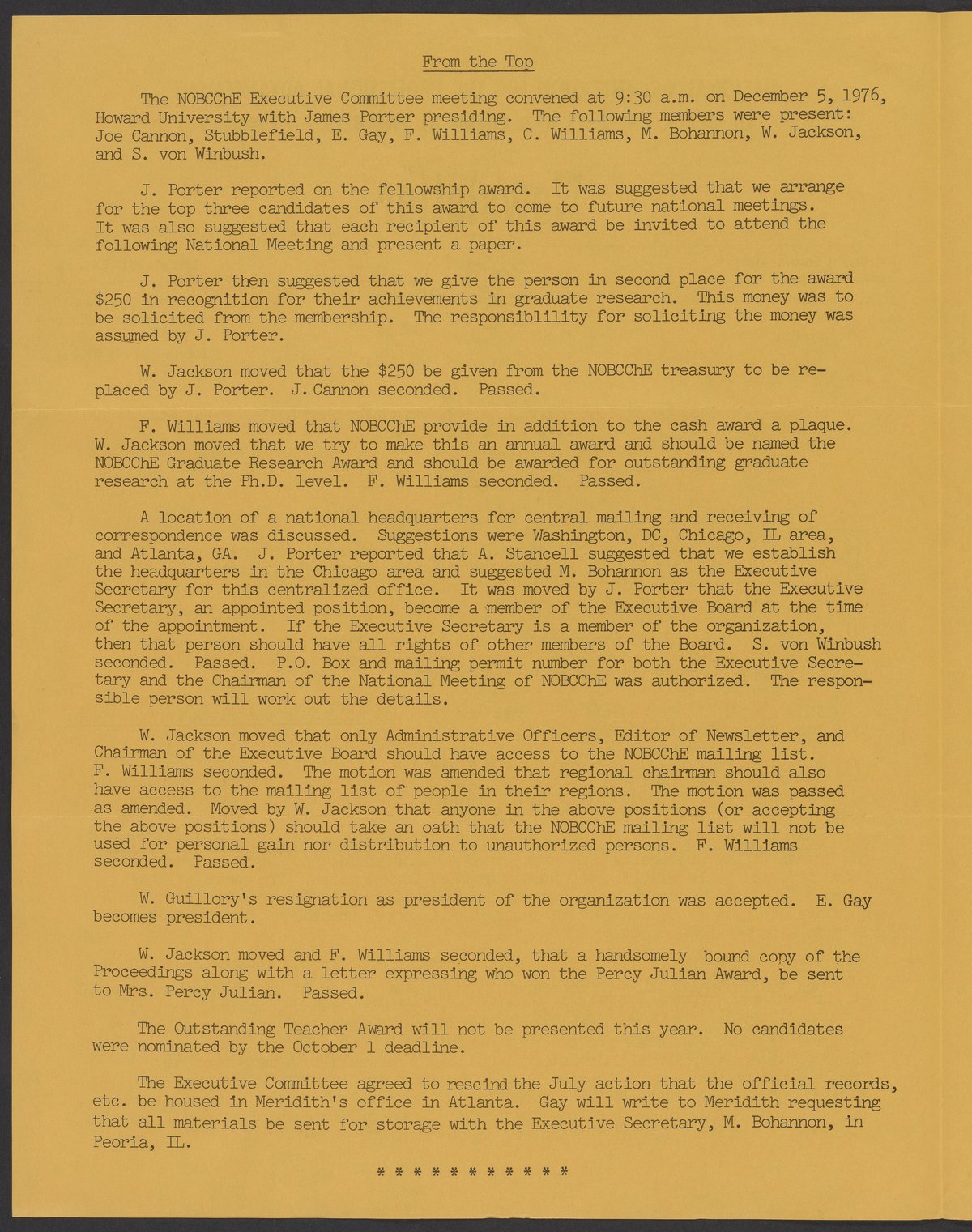 National Organization for the Professional Advancement of Black Chemists and Chemical Engineers newsletter, December 1976
