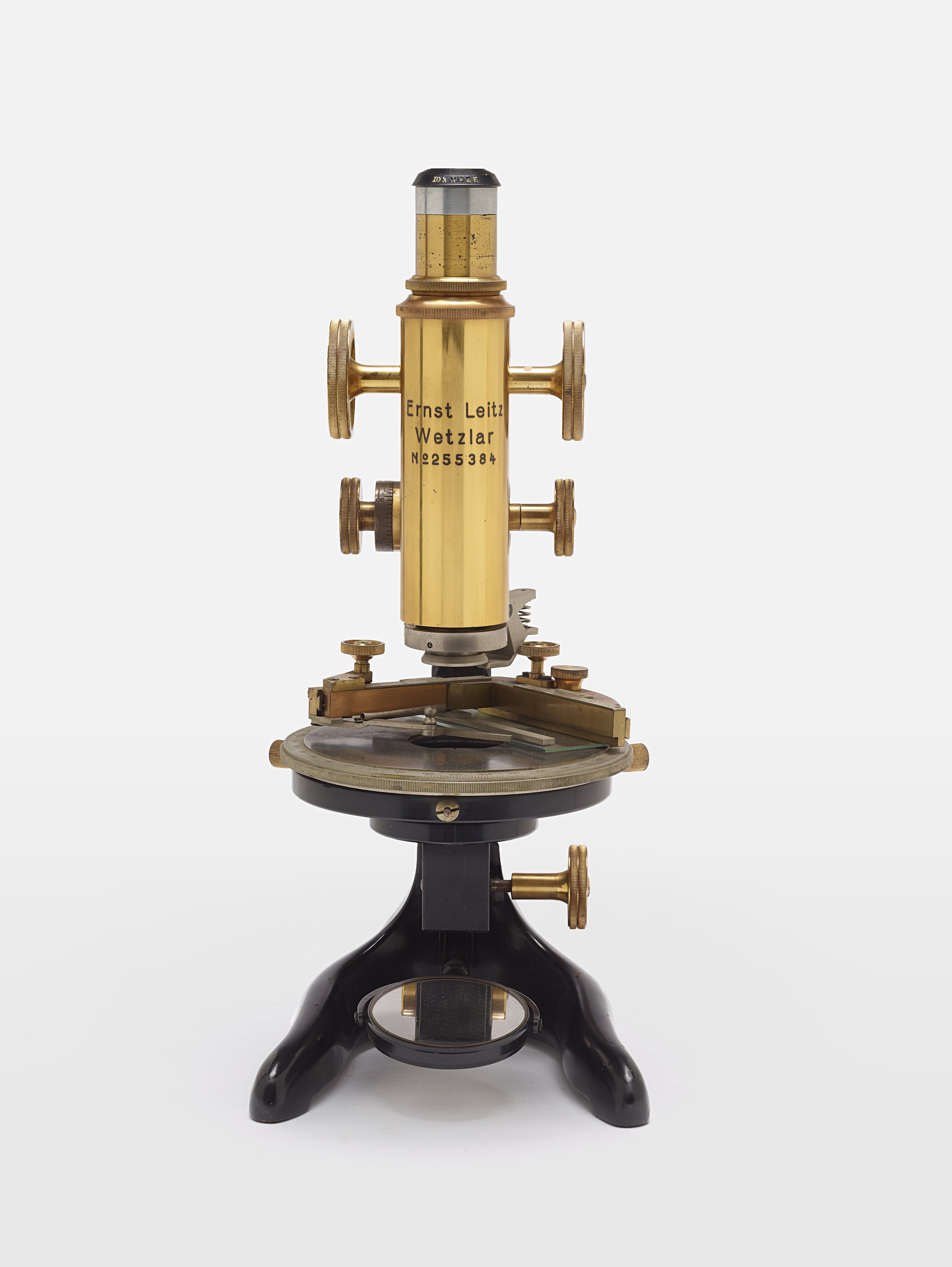 Small JPG1200 x 1597px — 110 KBLarge JPG2880 x 3834px — 488 KBFull-sized JPG7758 x 10327px — 3.2 MBOriginal fileTIFF — 7758 x 10327px — 229 MBThis type C medium-sized research microscope was manufactured by Ernst Leitz of Wetzlar, Germany. Featuring a black enamel horseshoe-shaped base and arm, this microscope also includes a reflecting mirror, eye piece, tube, stage with scale and brass clips. The stage moves up and down for focusing.
