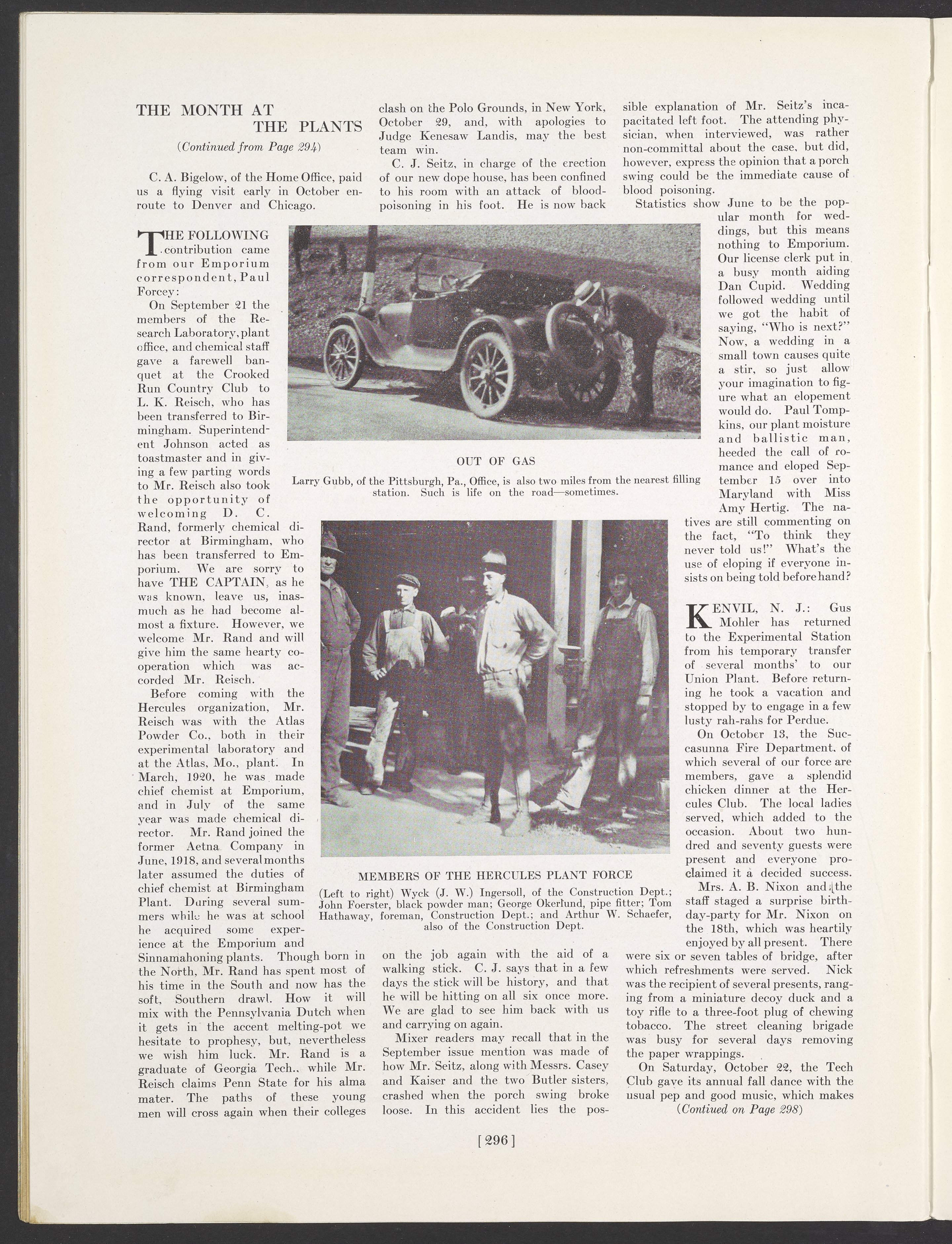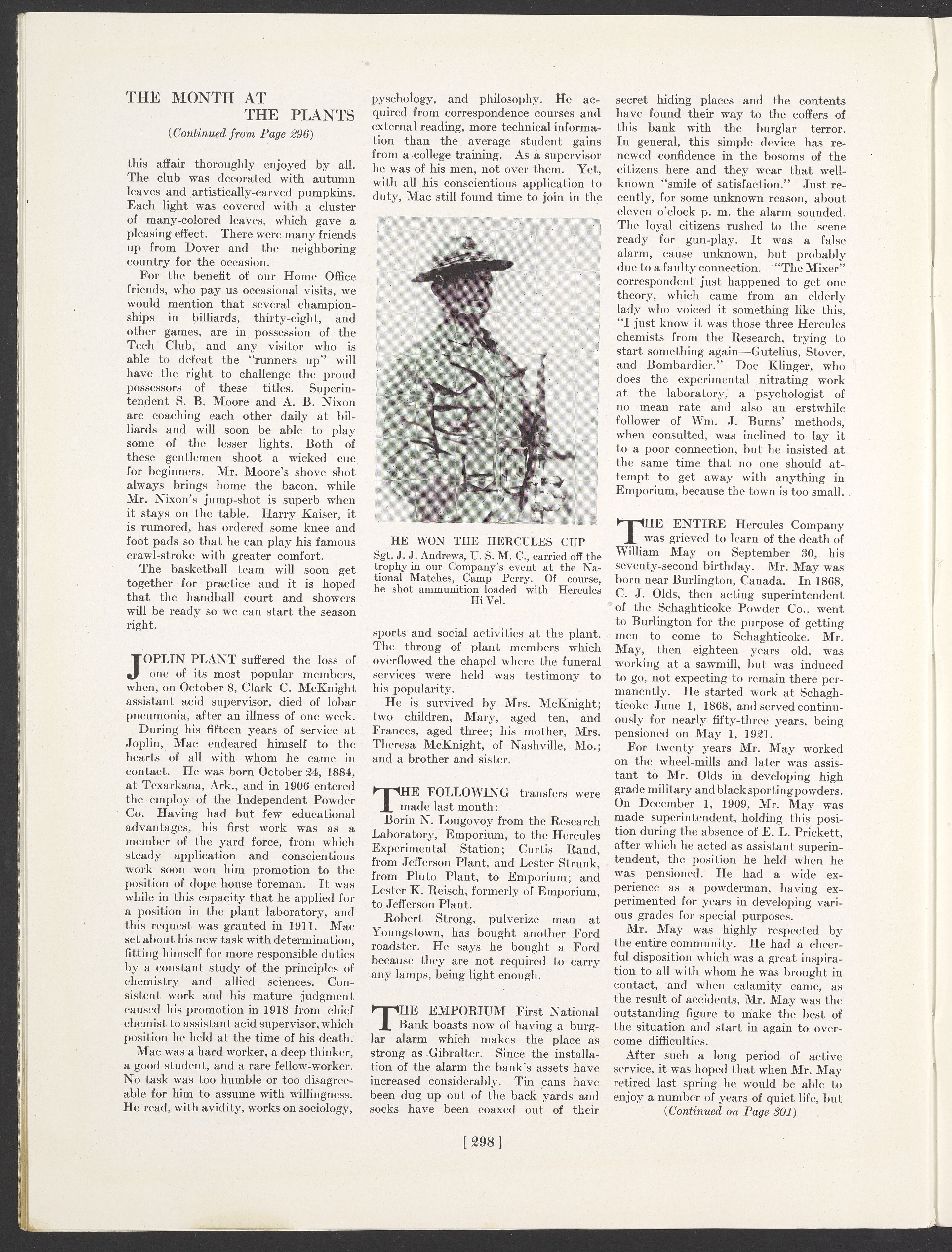 Small JPG1200 x 1593px — 384 KBLarge JPG2880 x 3822px — 2.5 MBFull-sized JPG3768 x 5001px — 4.1 MBOriginal fileTIFF — 3768 x 5001px — 54.0 MBNovember 1921 issue of The Hercules Mixer, the Hercules Powder Company's in-house publication that provided both historical and technical information and also offered a glimpse of employees' day-to-day lives at the company.