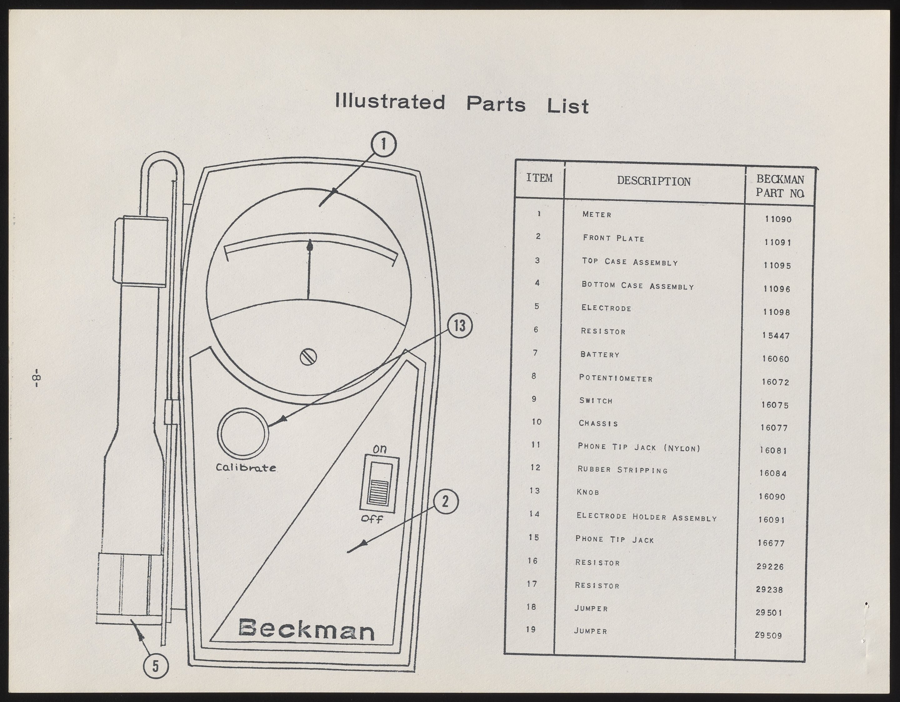 “Instructions, OM-1 Portable Oxygen Meter,” July 1957. Beckman Historical Collection, Box 105, Folder 121. Science History Institute. Philadelphia. https://digital.sciencehistory.org/works/3b5918656.