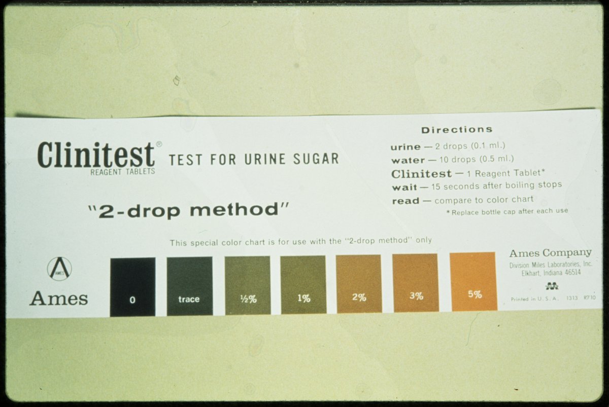 “Test for Urine Sugar Using Clinitest Reagent Tablets ,” 1970–1979. Photographs from the Dr. Michael Somogyi Collection, Box 2. Science History Institute. Philadelphia. https://digital.sciencehistory.org/works/3dz5cja.