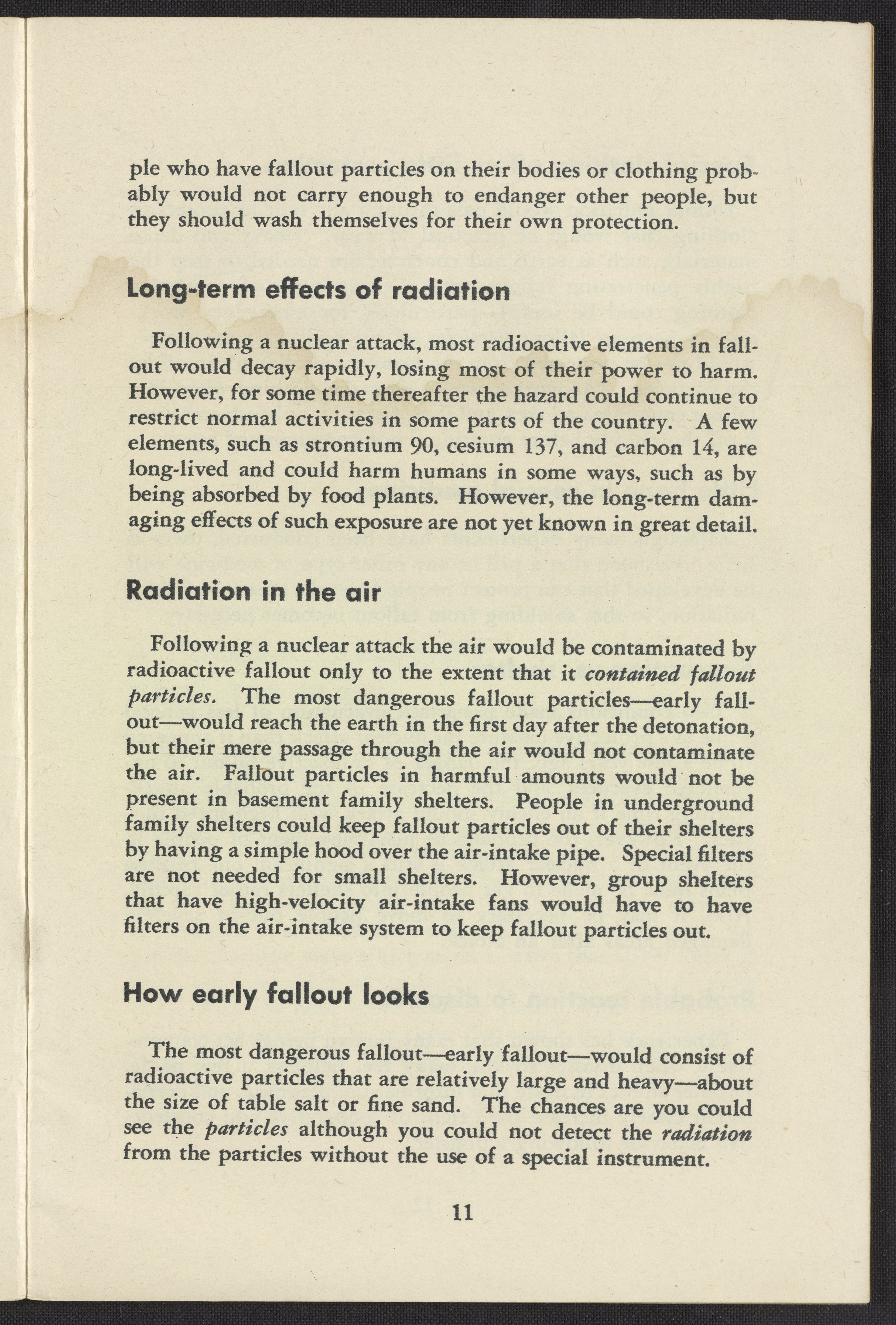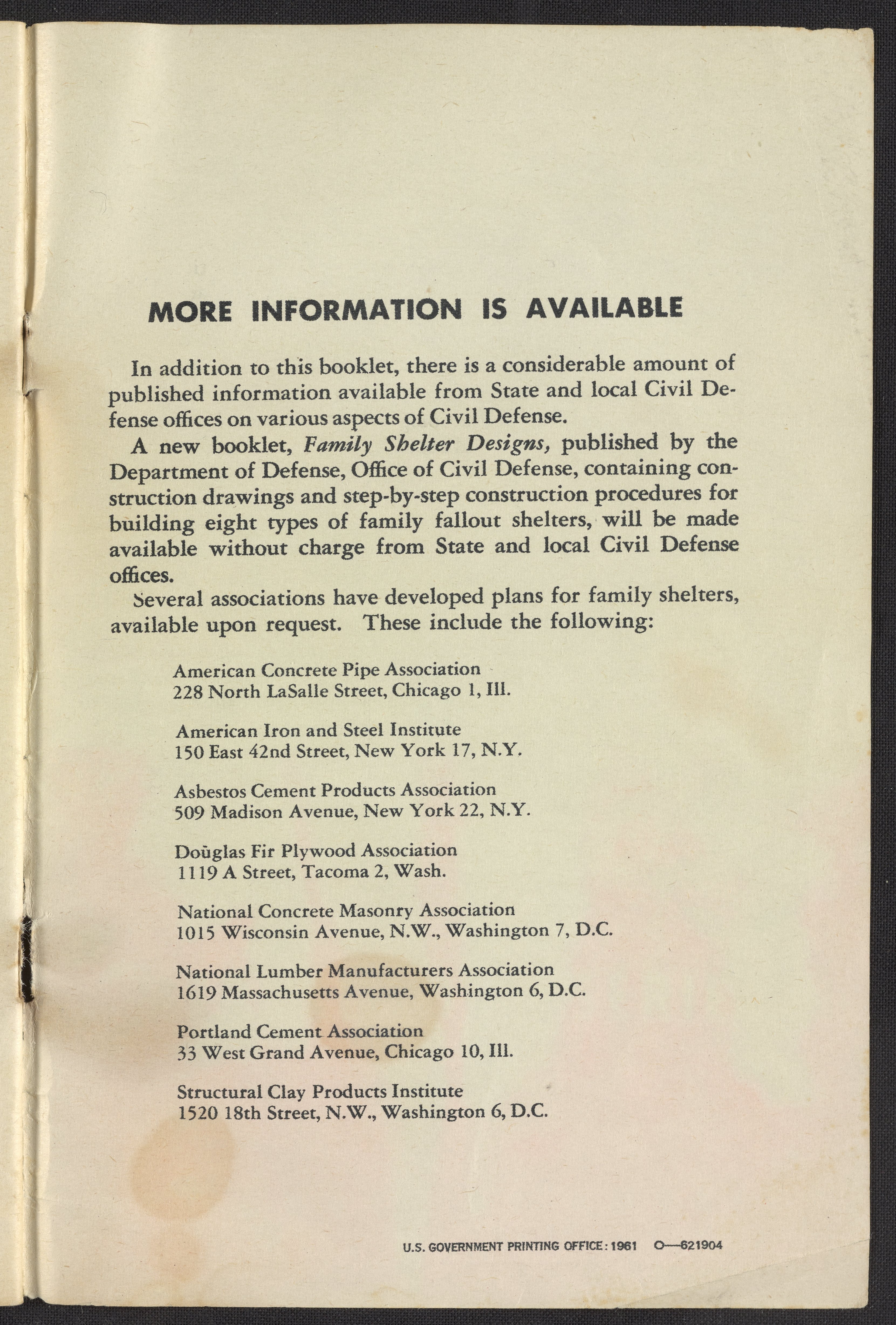 United States. Office of Civilian Defense. “Fallout Protection: What to Know and Do About Nuclear Attack.” Washington (D.C.): United States. Government Printing Office, 1961. https://digital.sciencehistory.org/works/3f4626366.