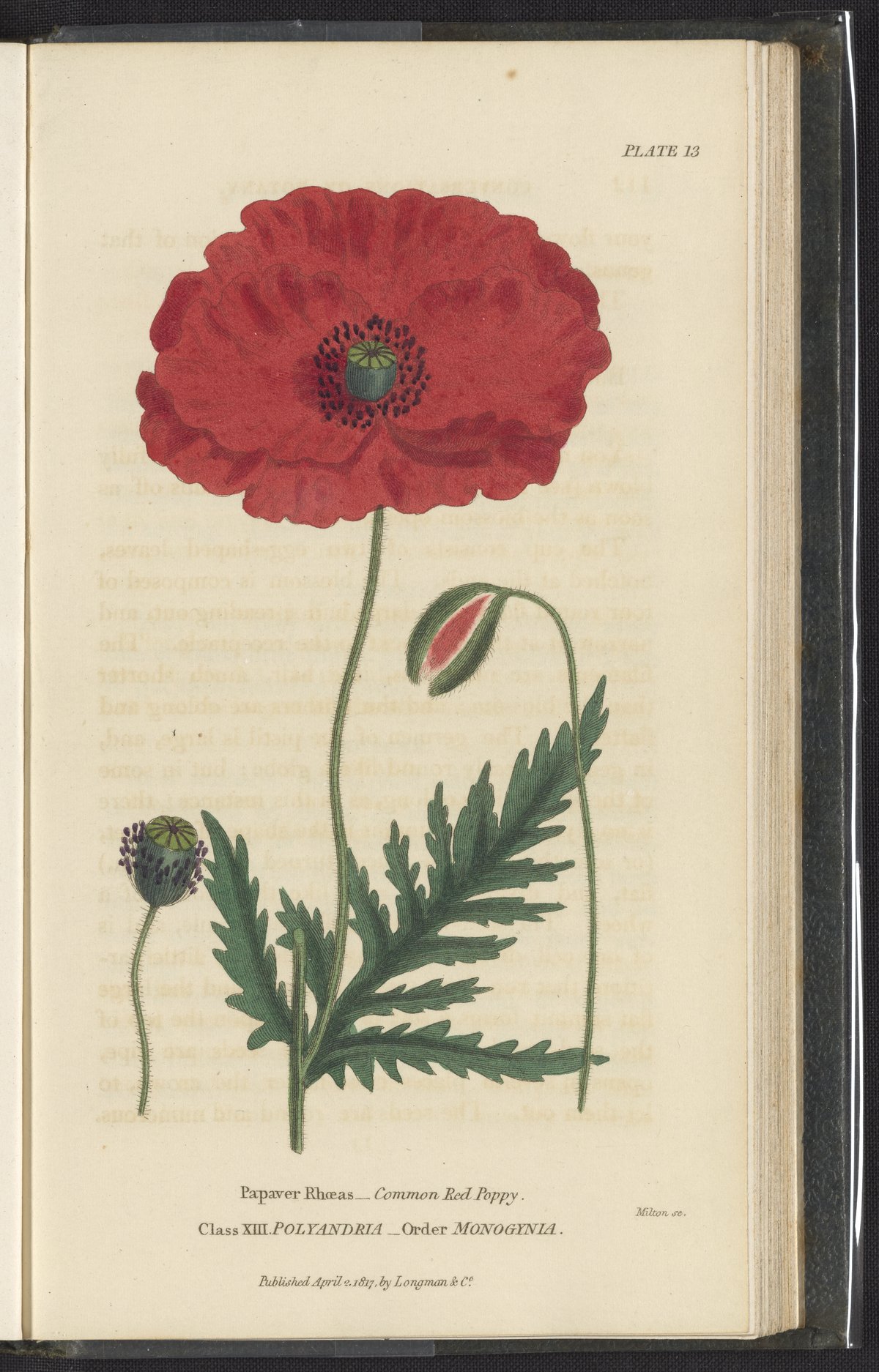 Fitton, Sarah Mary, and Elizabeth Fitton. “Plate 13: Papaver Rhoeas.” In Conversations on Botany. London, England: Longman, Hurst, Rees, Orme, and Brown, 1817. https://digital.sciencehistory.org/works/3j333228j.
