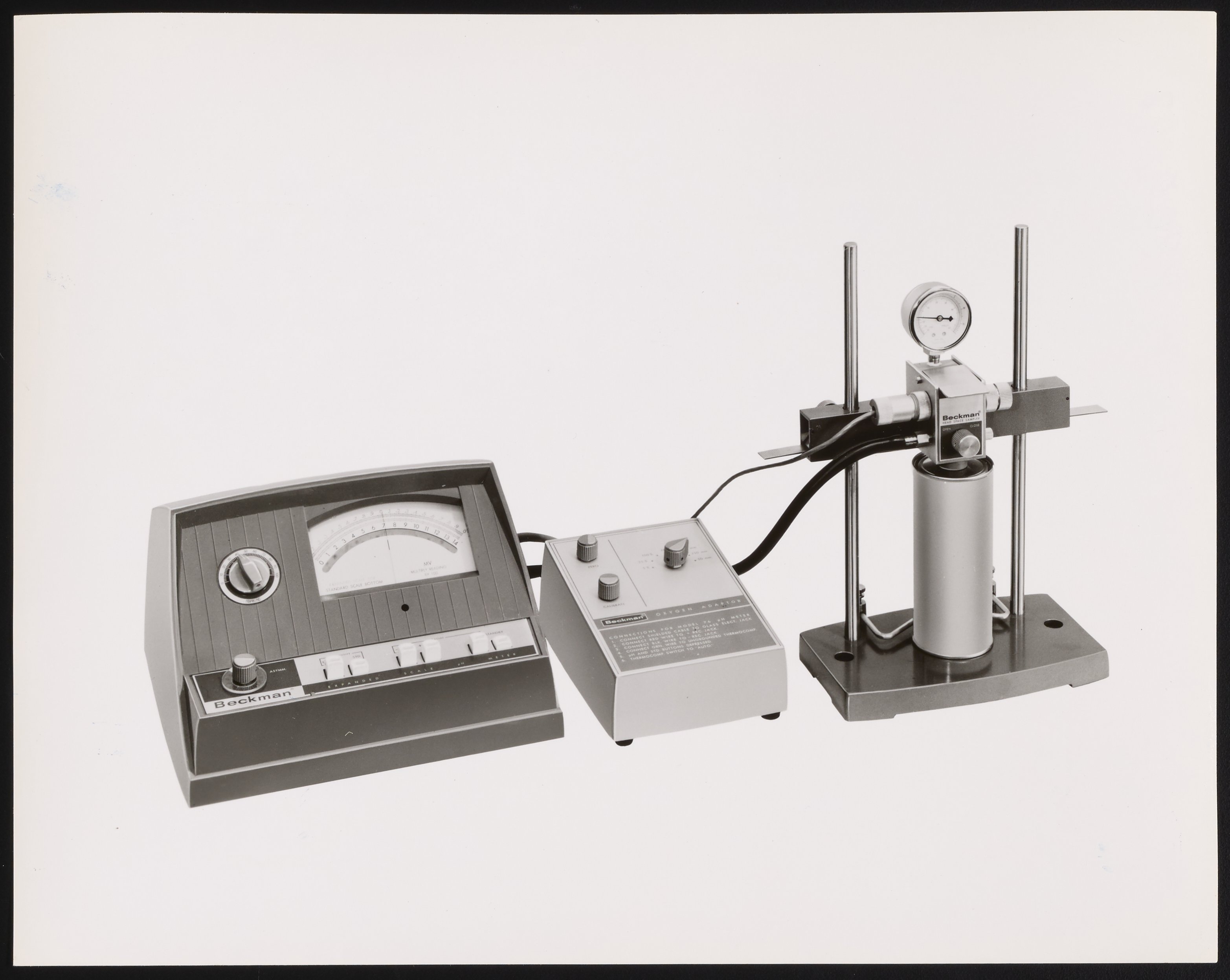 “Beckman Expanded Scale PH Meter, Oxygen Adapter, and Head Space Sampler,” n.d. Beckman Historical Collection, Box 81. Science History Institute. Philadelphia. https://digital.sciencehistory.org/works/3j333234p.