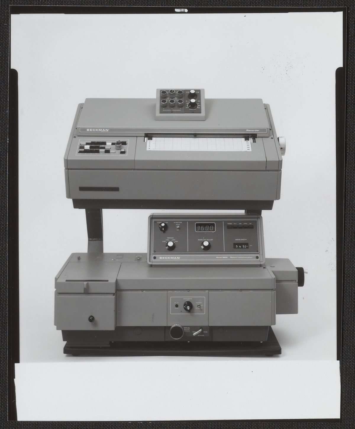 Karjalas' Photo Vision. “Beckman Model 3600 Spectrophotometer and Recorder,” 1960–1969. Beckman Historical Collection, Box 84. Science History Institute. Philadelphia. https://digital.sciencehistory.org/works/3j3332392.