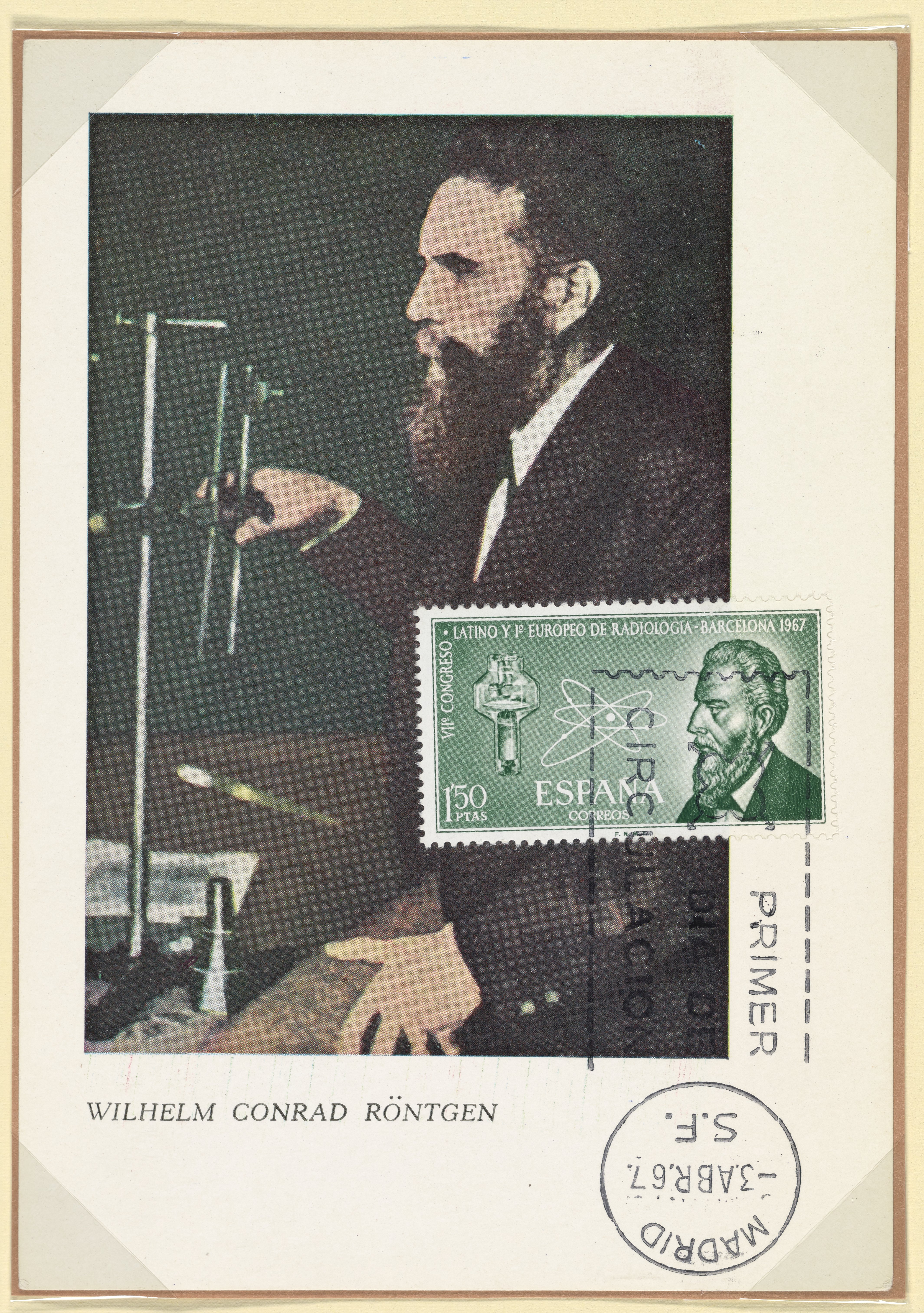“Postcard and Spanish Postage Stamp Commemorating Wilhelm Conrad Röntgen.” Spain, 1967. Witco Stamp Collection, Box 2. Science History Institute. Philadelphia. https://digital.sciencehistory.org/works/3j333242c.