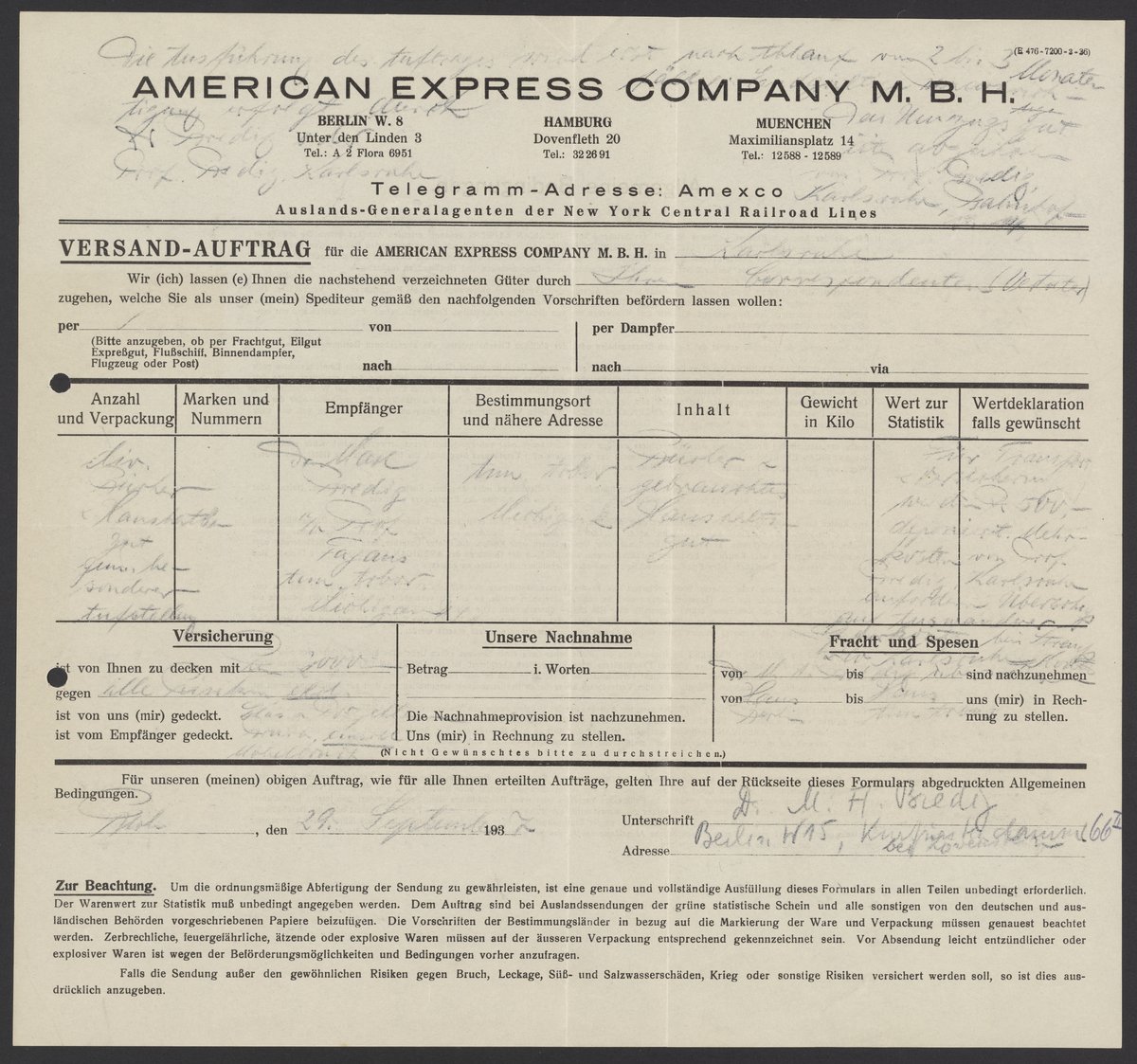 American Express Company. “American Express Company Telegram Form,” September 29, 1937. Papers of Georg and Max Bredig, Box 10, Folder 17. Science History Institute. Philadelphia. https://digital.sciencehistory.org/works/3jmo5d9.