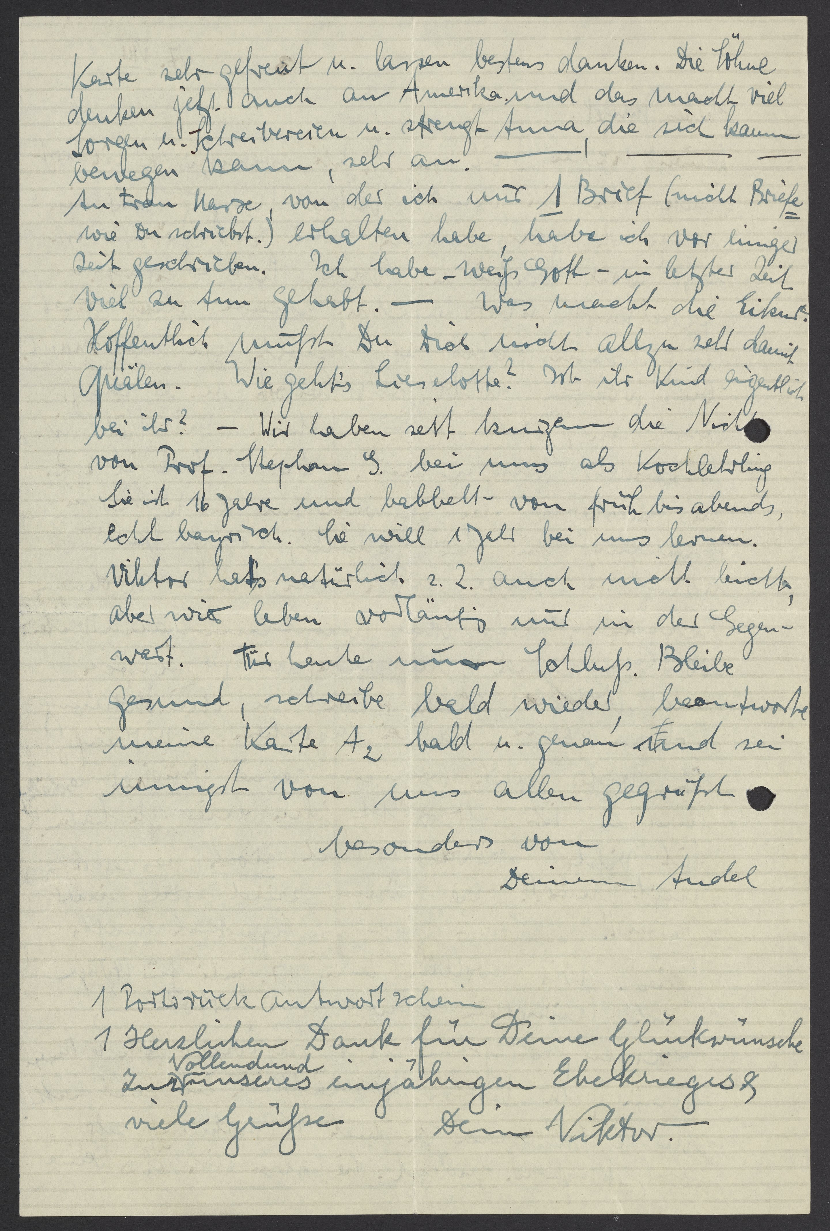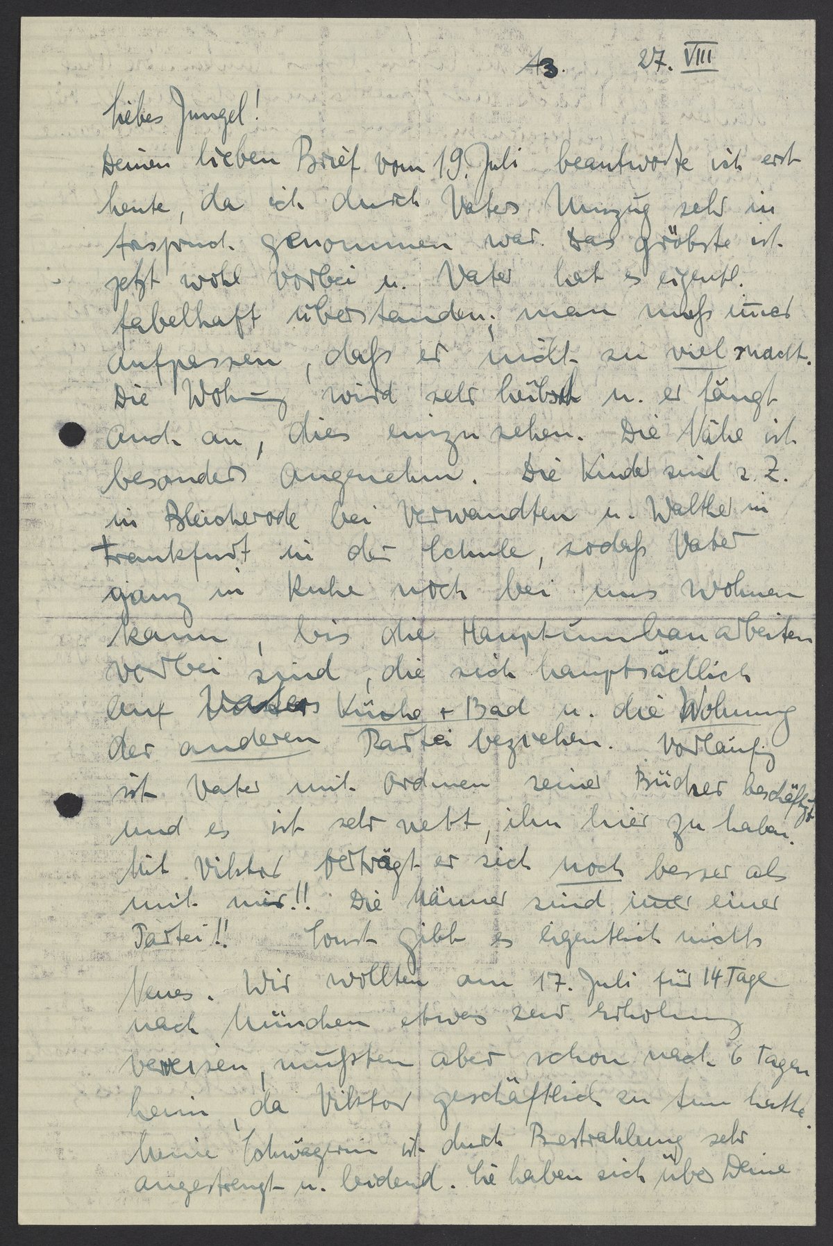 Letter from Marianne and Viktor Homburger to Max Bredig, August 27, 1938