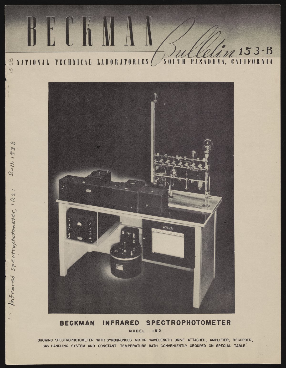 Beckman Instruments, Inc. “Instructions, Beckman Infrared Spectrophotometer, Model IR-2,” November 1947. Beckman Historical Collection, Box 104, Folder 105. Science History Institute. Philadelphia. https://digital.sciencehistory.org/works/3r074v594.