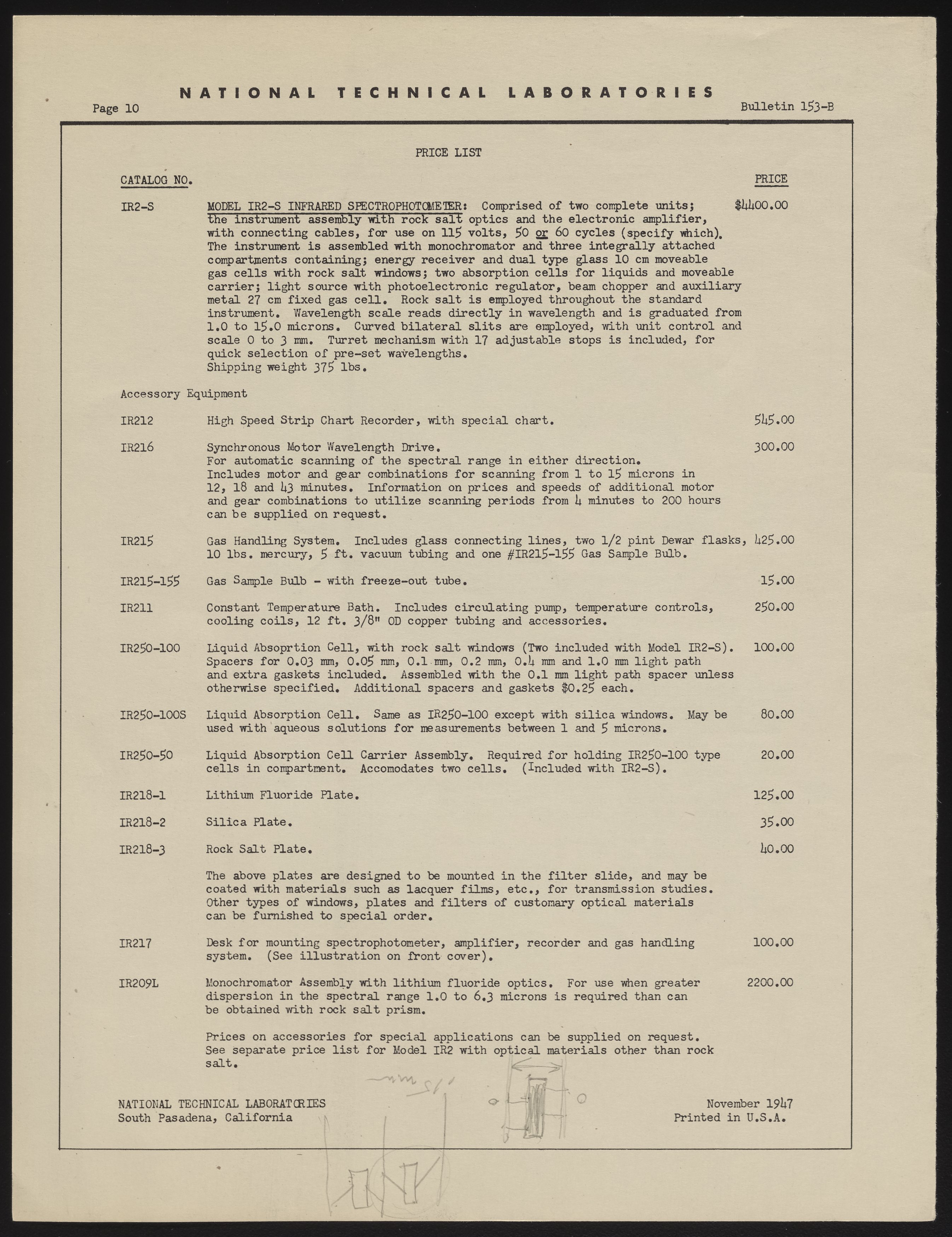 Beckman Instruments, Inc. “Instructions, Beckman Infrared Spectrophotometer, Model IR-2,” November 1947. Beckman Historical Collection, Box 104, Folder 105. Science History Institute. Philadelphia. https://digital.sciencehistory.org/works/3r074v594.
