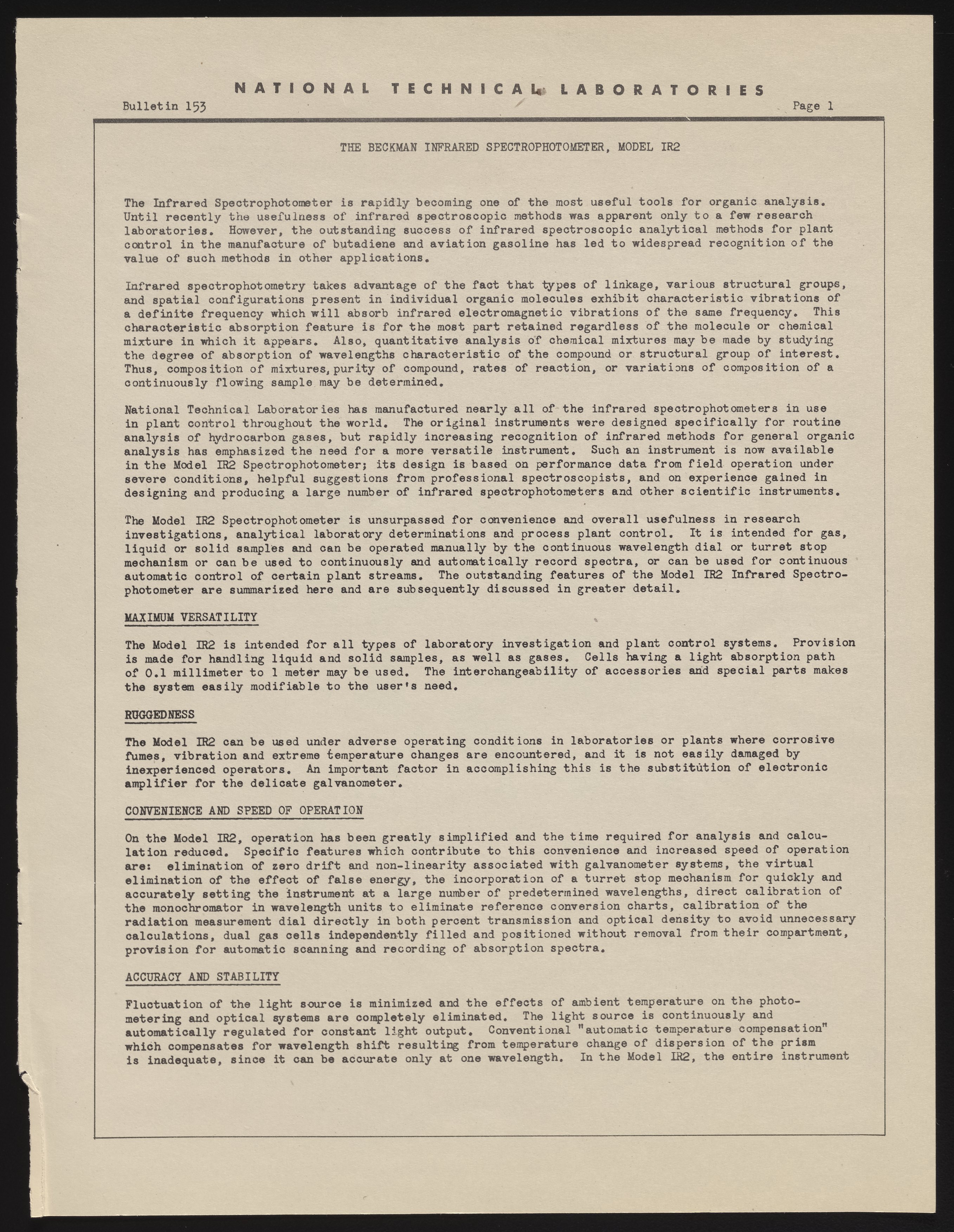 Instructions, Beckman Infrared Spectrophotometer, Model IR-2