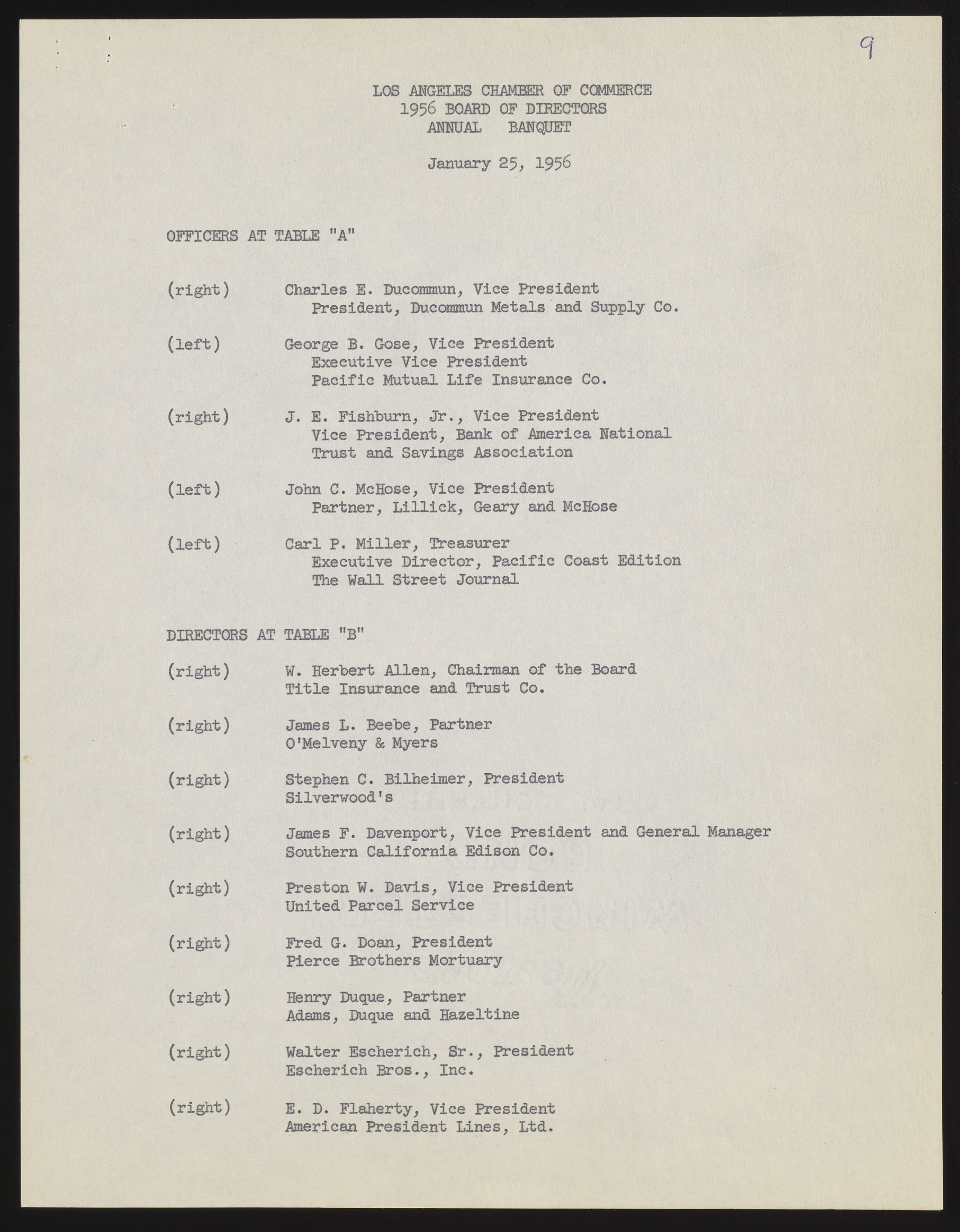 Small JPG1200 x 1537px — 231 KBFull-sized JPG2786 x 3568px — 1.0 MBOriginal fileTIFF — 2786 x 3568px — 28.5 MBBeckman's address as incoming president of the Los Angeles Chamber of Commerce references major challenges, including air pollution. A list of incoming officers and directors is included, along with minor annotations in pen.