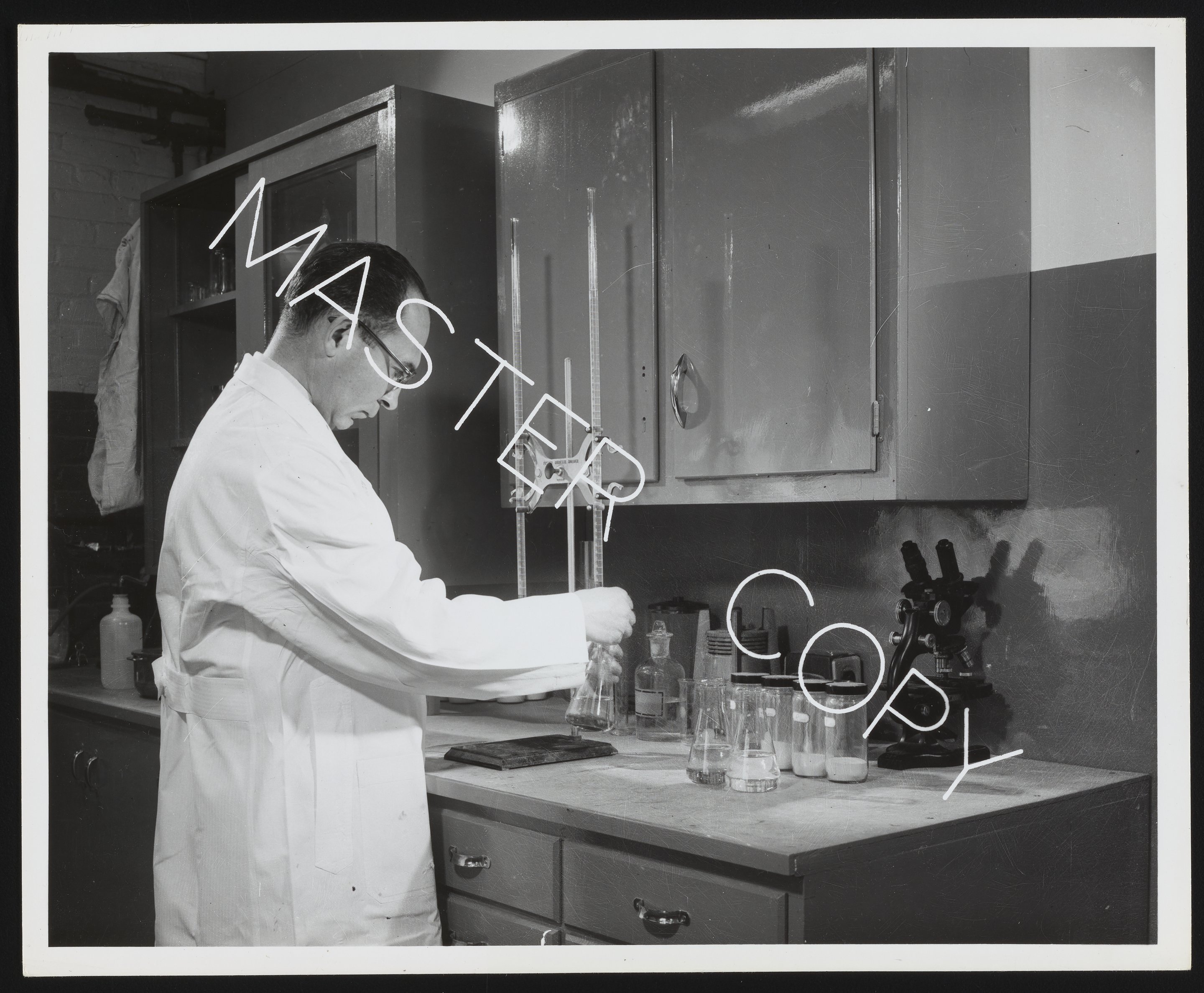 Dow Chemical Company. “Bernie Thiegs at Work in Dow Agricultural Research and Development Laboratory,” 1954. Dow Chemical Company Historical Image Collection, Box 2, Folder Plants--Agricultural Research & Development Laboratory. Science History Institute. Philadelphia. https://digital.sciencehistory.org/works/3r074v925.
