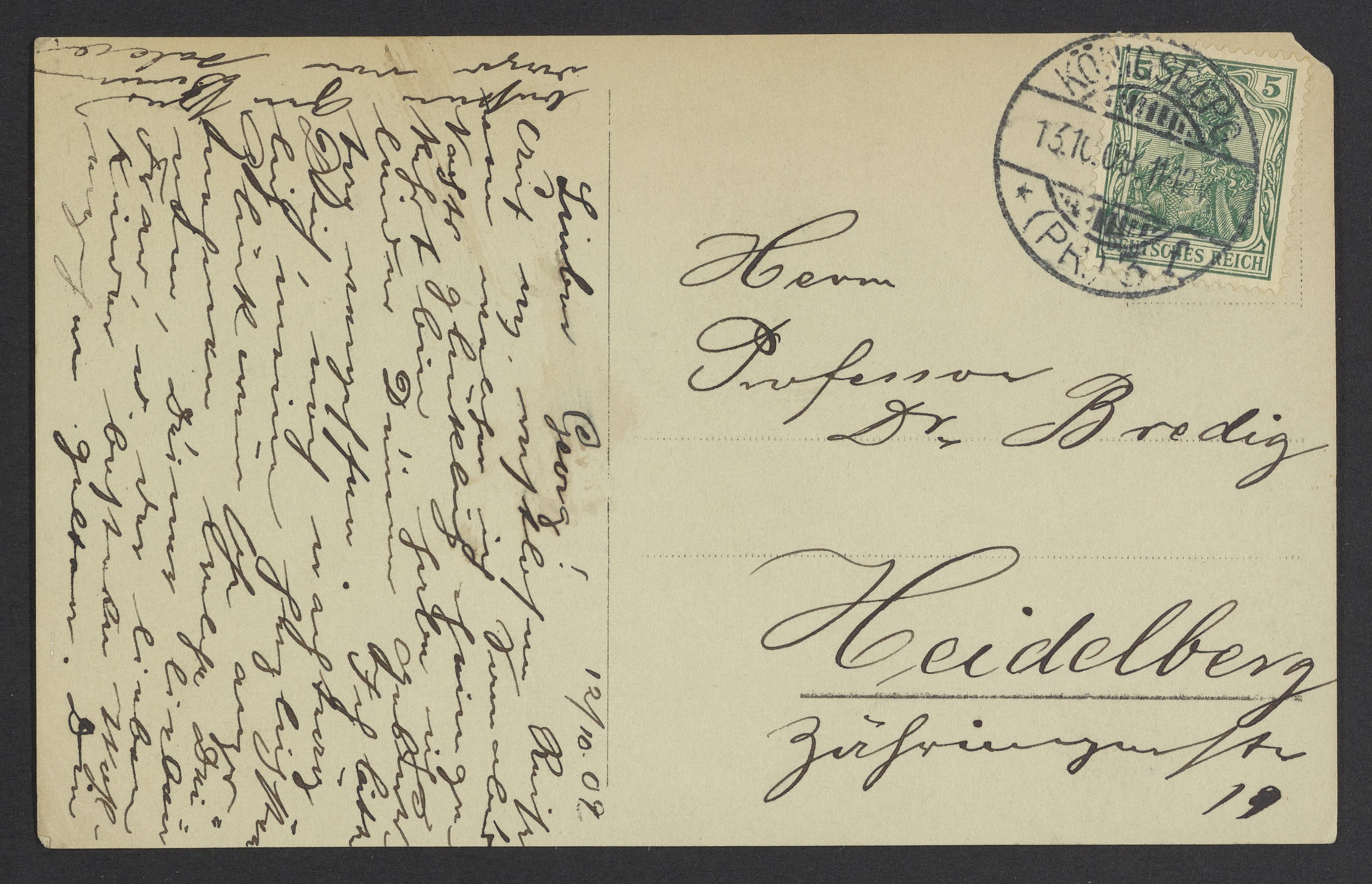 Small JPG1200 x 1859px — 292 KBFull-sized JPG2256 x 3495px — 1006 KBOriginal fileTIFF — 2256 x 3495px — 22.6 MBPostcard from an unidentified sender to Georg Bredig (1868-1944). The front of the postcard features a black and white portrait of Ernst Haeckel (1834-1919).