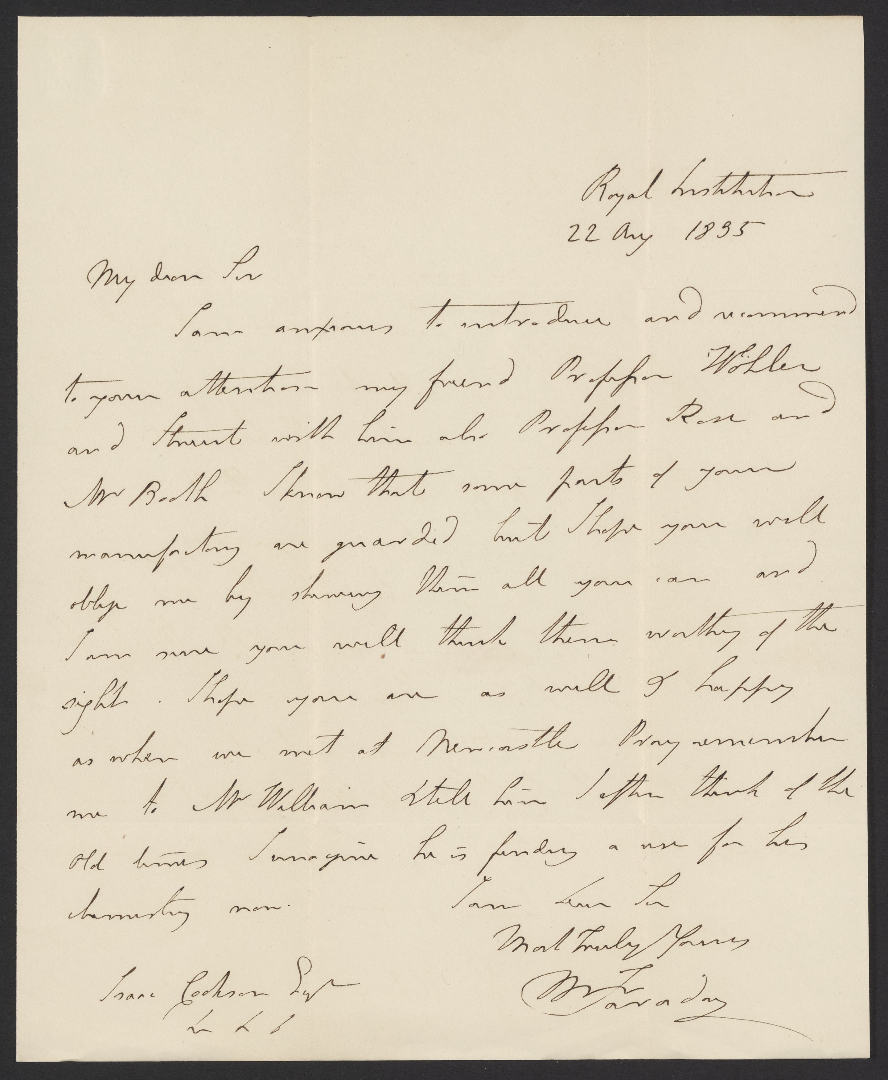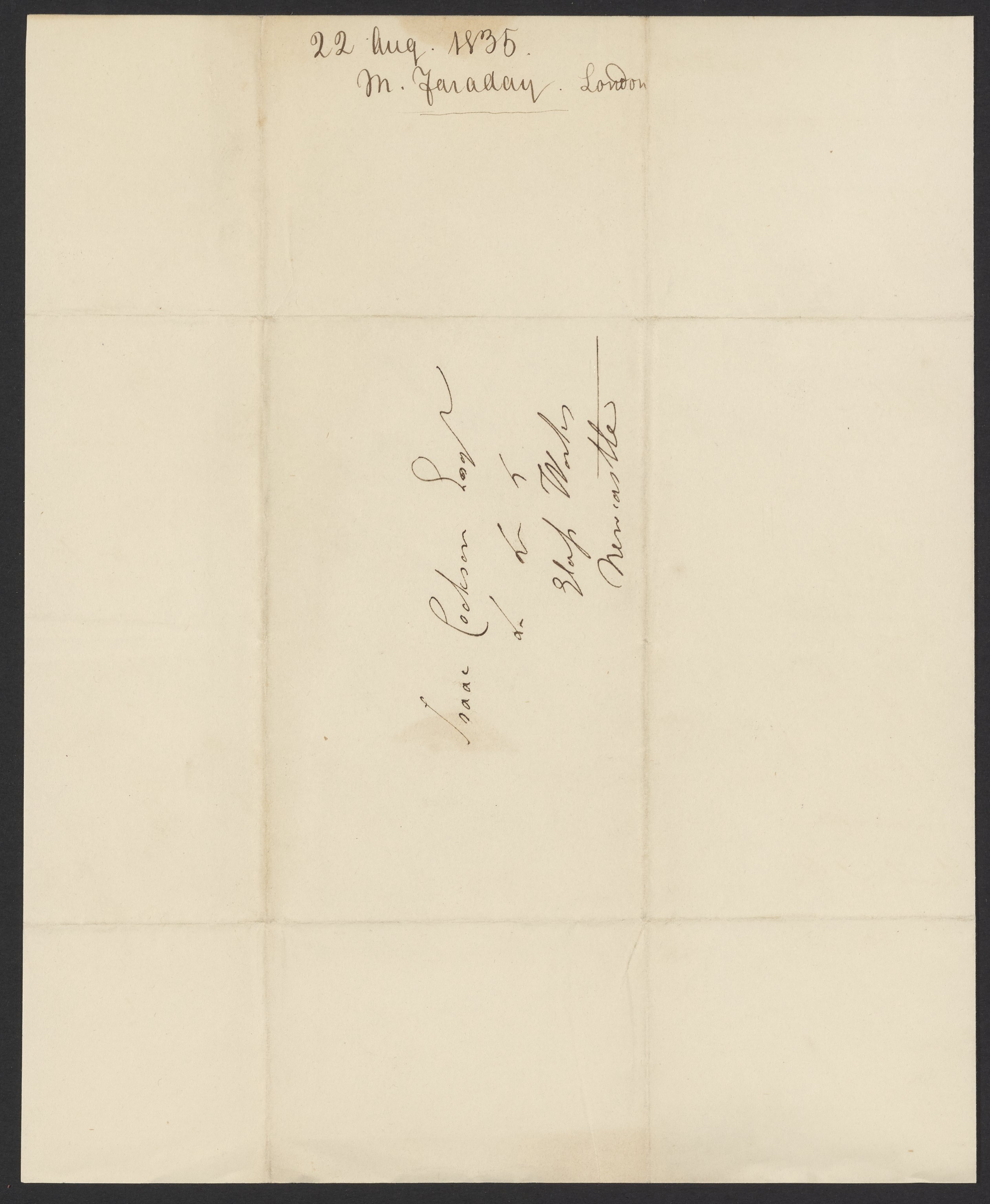 Letter from Michael Faraday to James Curtis Booth, August 22, 1835