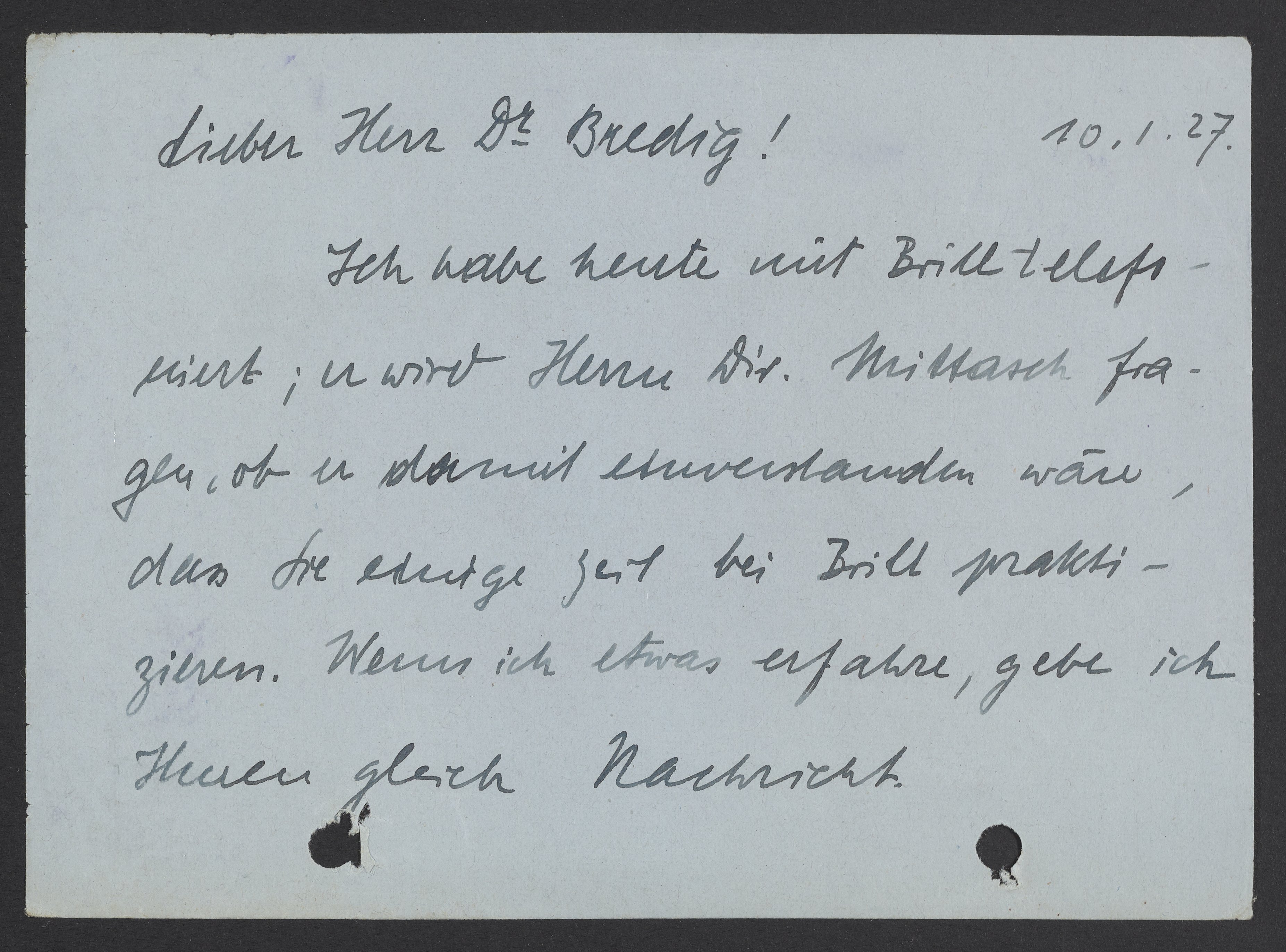 Lieber Dr. Bredig!