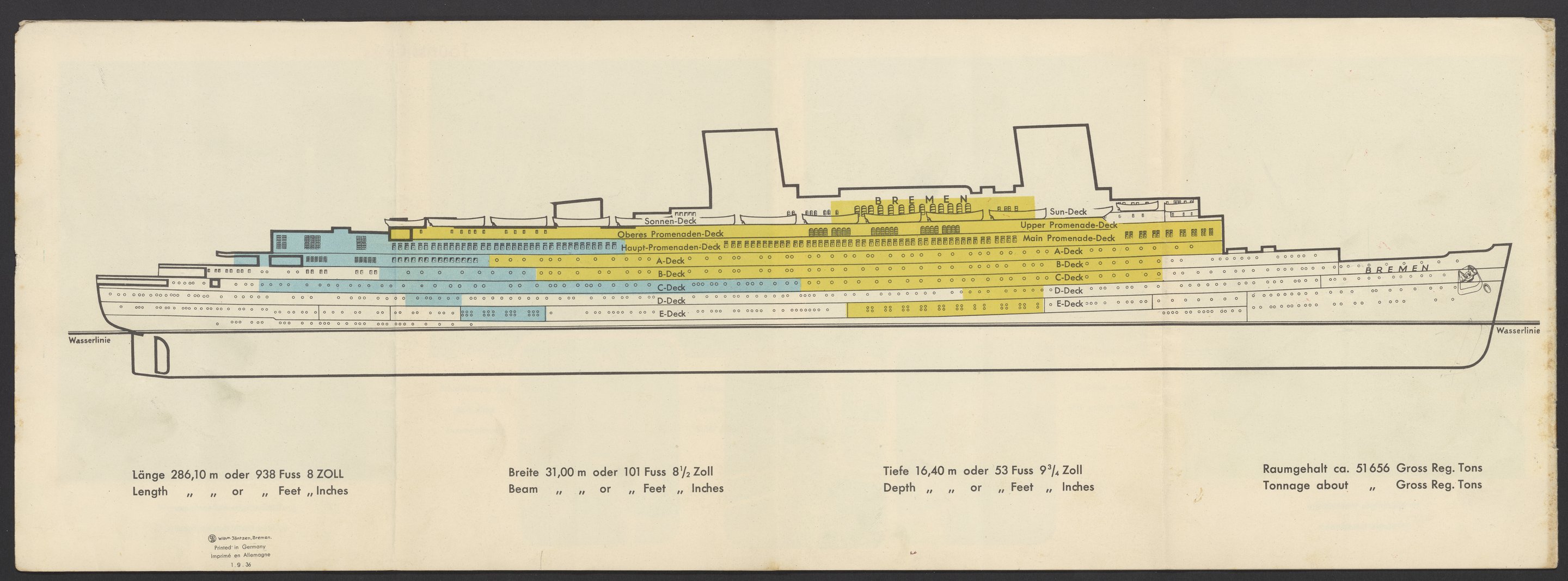 Norddeutscher Lloyd. “Norddeutscher Lloyd Bremen Cabin Plan,” 1936. Papers of Georg and Max Bredig, Box 10, Folder 30. Science History Institute. Philadelphia. https://digital.sciencehistory.org/works/3wzgzro.