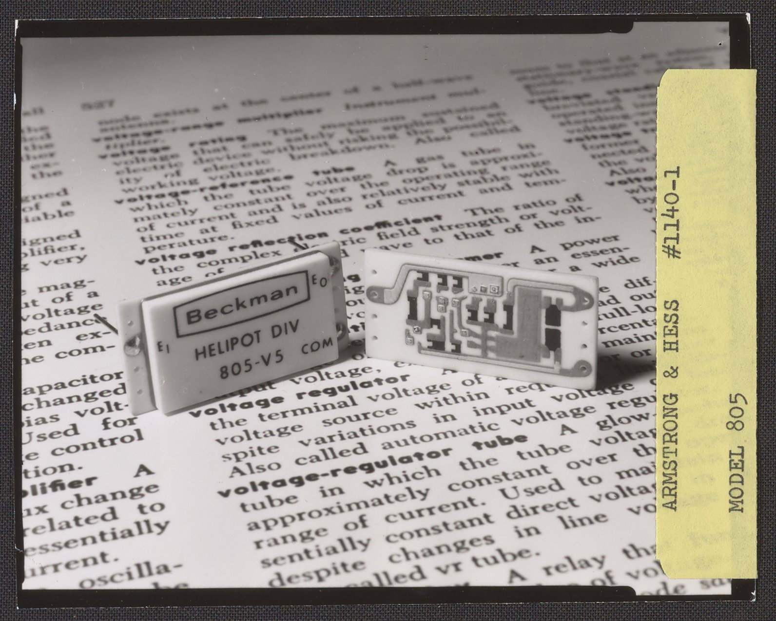 Armstrong & Hess. “Helipot Model 805 Voltage Regulators on a Dictionary Page,” 1950–1969. Beckman Historical Collection, Box 85. Science History Institute. Philadelphia. https://digital.sciencehistory.org/works/3x816n02f.