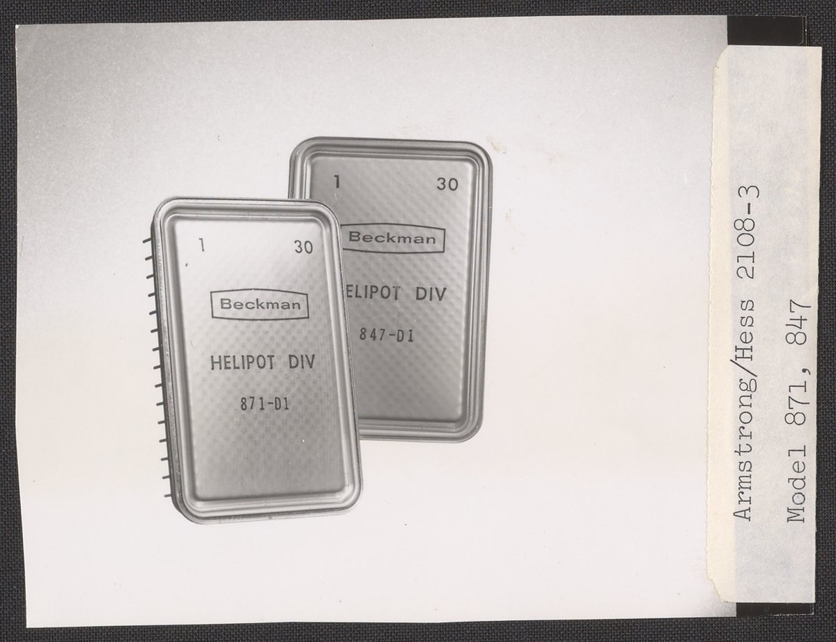 Armstrong & Hess. “Helipot Analog to Digital Converters Models 847 and 871,” 1950–1969. Beckman Historical Collection, Box 85. Science History Institute. Philadelphia. https://digital.sciencehistory.org/works/3x816n03q.