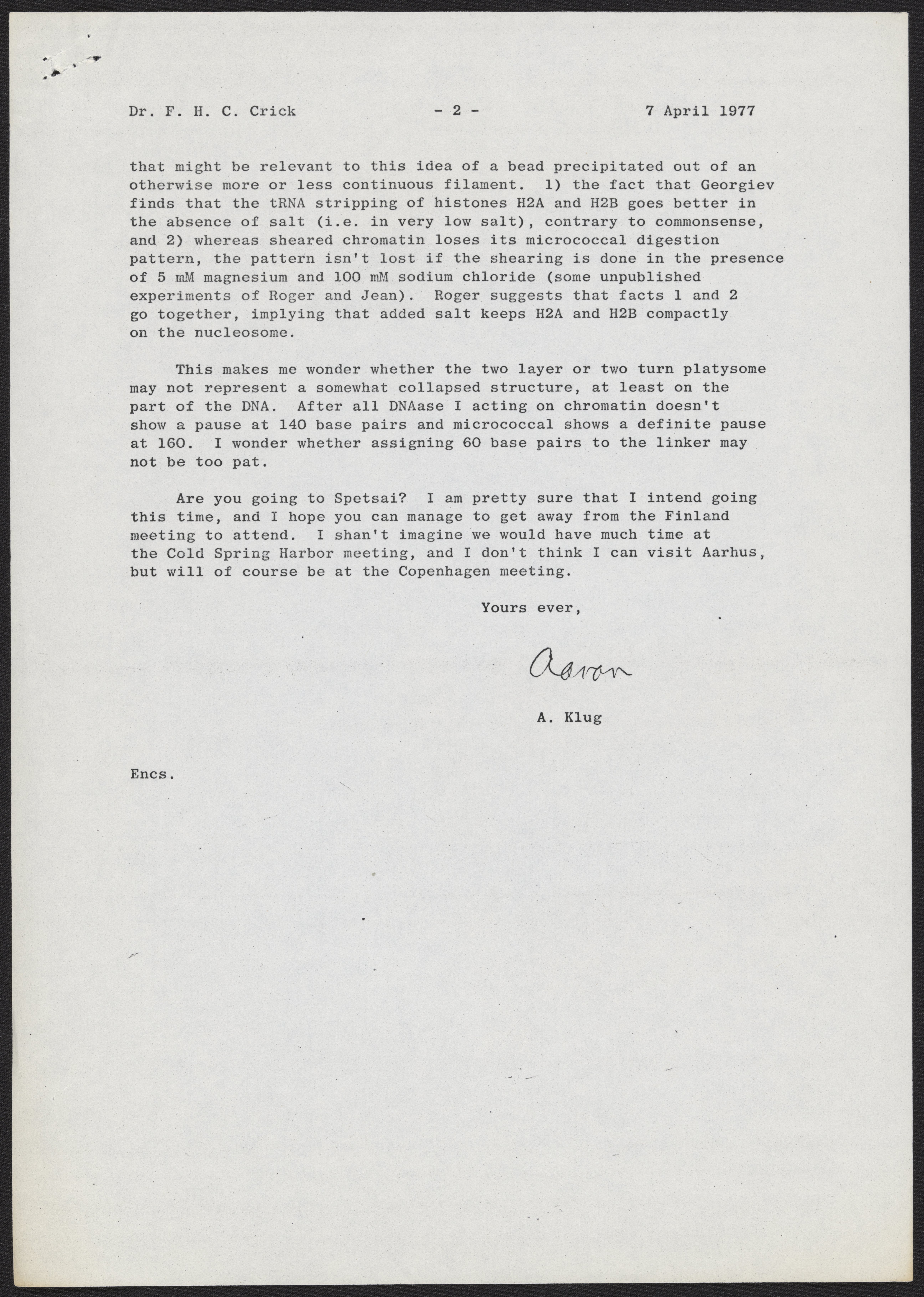 Klug, A. (Aaron), Sir. “Letter from Aaron Klug to Francis Crick, April 7, 1977,” April 7, 1977. History of Molecular Biology Collection, Box 20, Folder 1. Science History Institute. Philadelphia. https://digital.sciencehistory.org/works/417gqpn.
